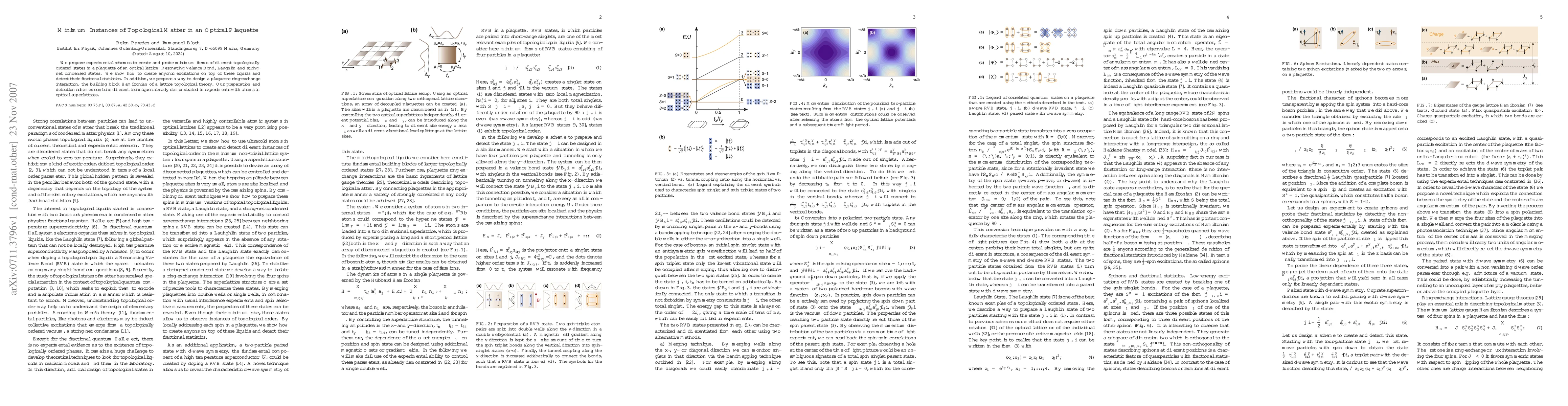 We propose experimental schemes to create and probe minimum forms of different topologically ordered states in a plaquette of an optical lattice: Resonating Valence Bond, Laughlin and string-net condensed states. We show how to create anyonic excitations on top of these liquids and detect their fractional statistics. In addition, we propose a way to design a plaquette ring-exchange interaction, the building block Hamiltonian of a lattice topological theory. Our preparation and detection schemes combine different techniques already demonstrated in experiments with atoms in optical superlattices.