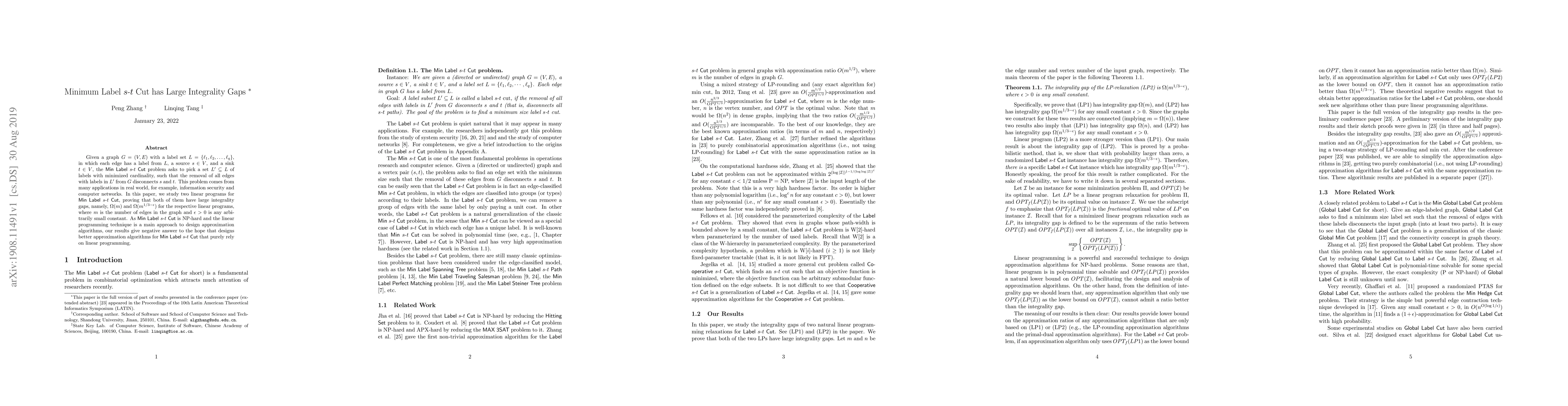 This paper investigates the Min Label s-t Cut problem in graphs, showing that two linear programs designed for it have integrality gaps of Omega(m) and Omega(m^(1/3-epsilon)), indicating that linear programming cannot yield better approximation algorithms for this NP-hard problem.