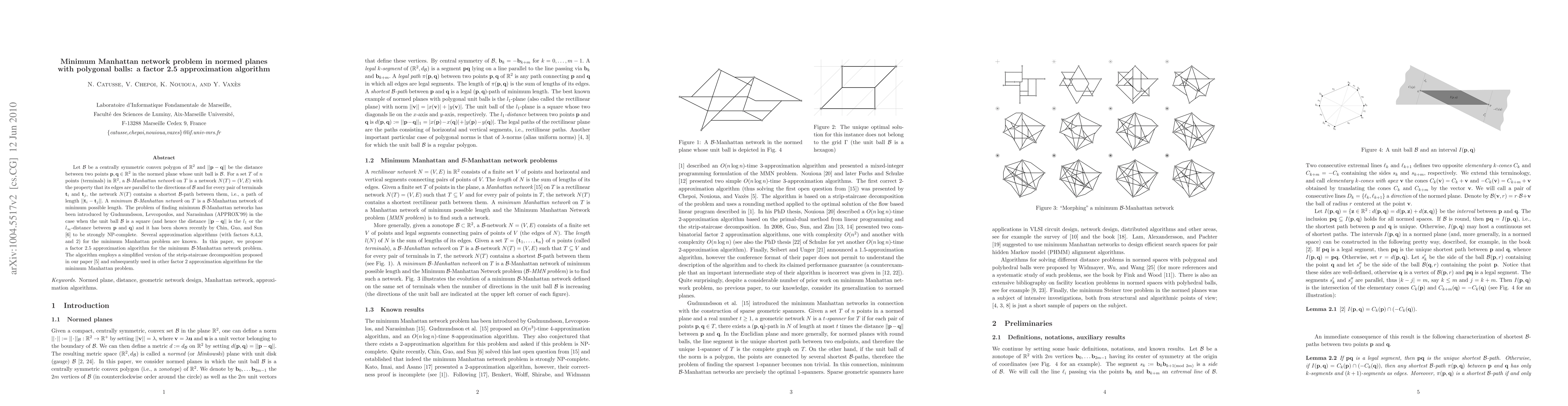 This paper presents a factor 2.5 approximation algorithm for the minimum B-Manhattan network problem in normed planes, where B is a centrally symmetric convex polygon. The algorithm utilizes a simplified strip-staircase decomposition to achieve the approximation.