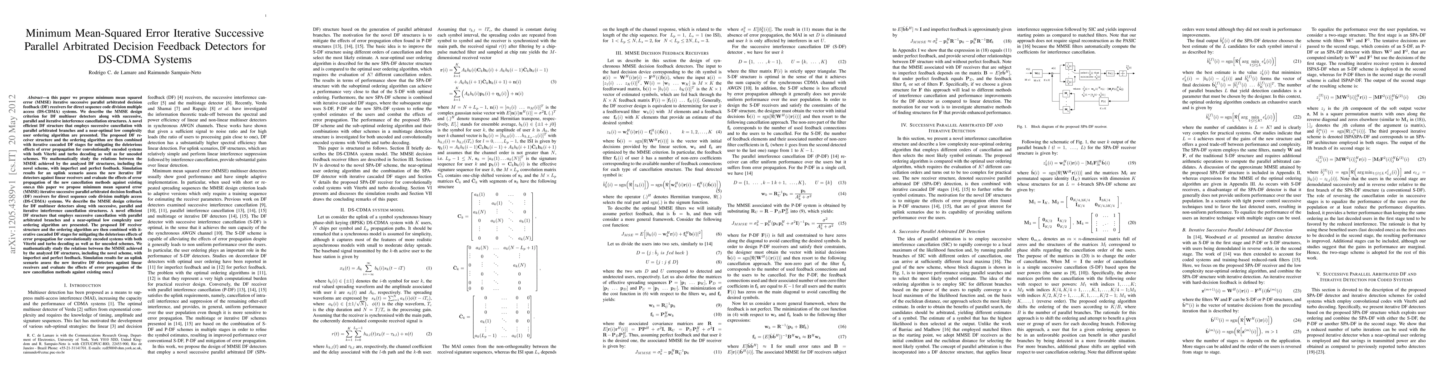 This paper proposes minimum mean-squared error iterative successive parallel arbitrated decision feedback receivers for DS-CDMA systems, introducing a novel efficient DF structure with a low complexity user ordering algorithm and iterative cascaded DF stages to mitigate error propagation. Simulation results compare the new iterative DF detectors against linear receivers in an uplink scenario.