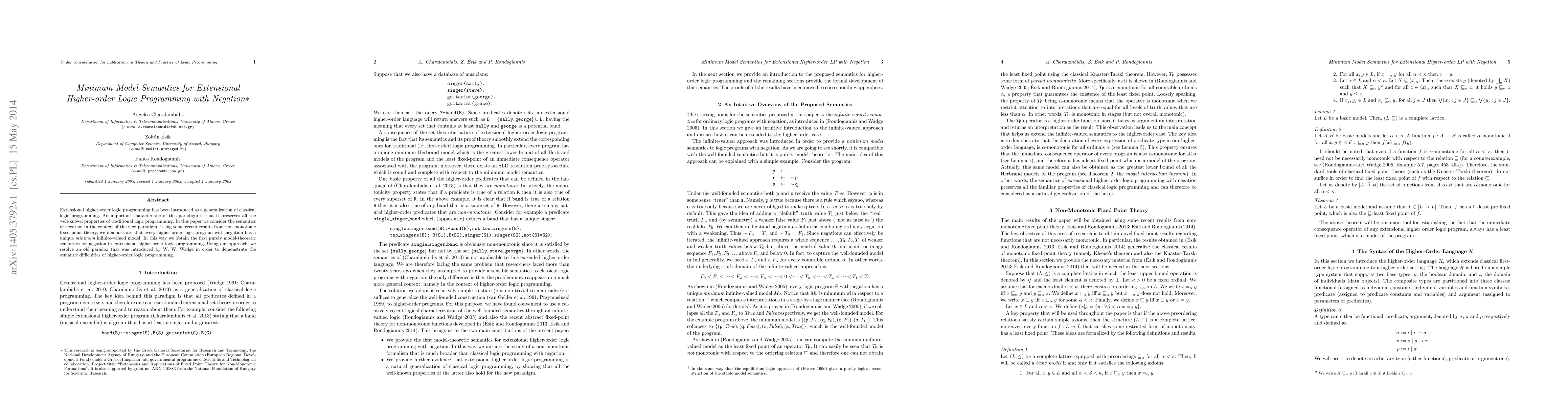 This paper introduces a minimum model semantics for extensional higher-order logic programming with negation, proving the existence of a unique minimum infinite-valued model for such programs. This model-theoretic approach resolves a long-standing paradox in higher-order logic programming and provides a consistent semantics for negation.