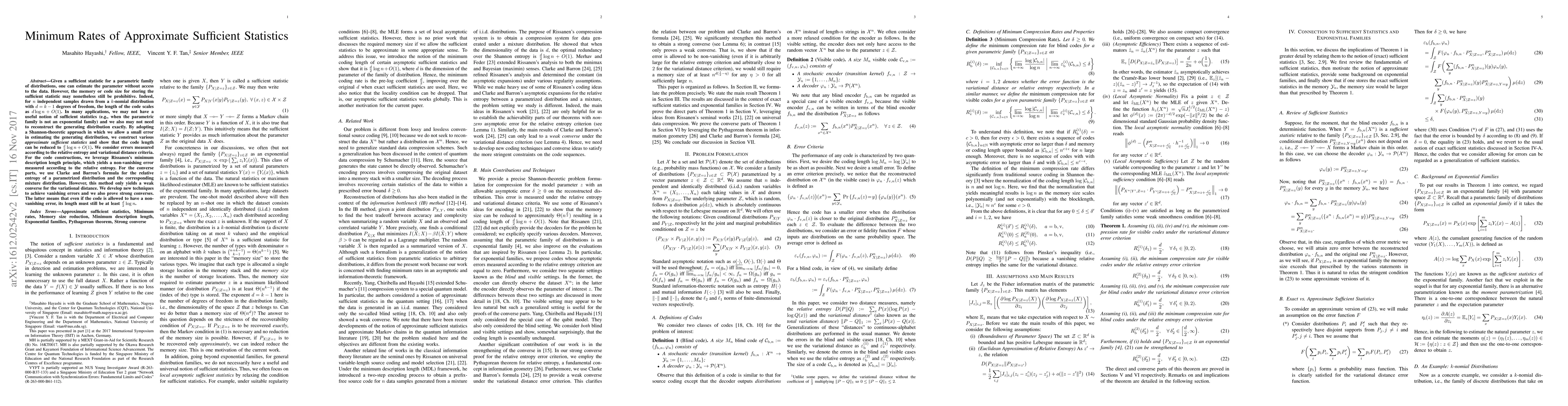 Researchers develop a new approach to estimate parameters in probability distributions without access to data, reducing code length from $d extlog n+O(1)$ to $rac{d}{2} extlog n+O(1)$. The method provides strong converses and can handle non-exponential families with useful notions of sufficient statistics.