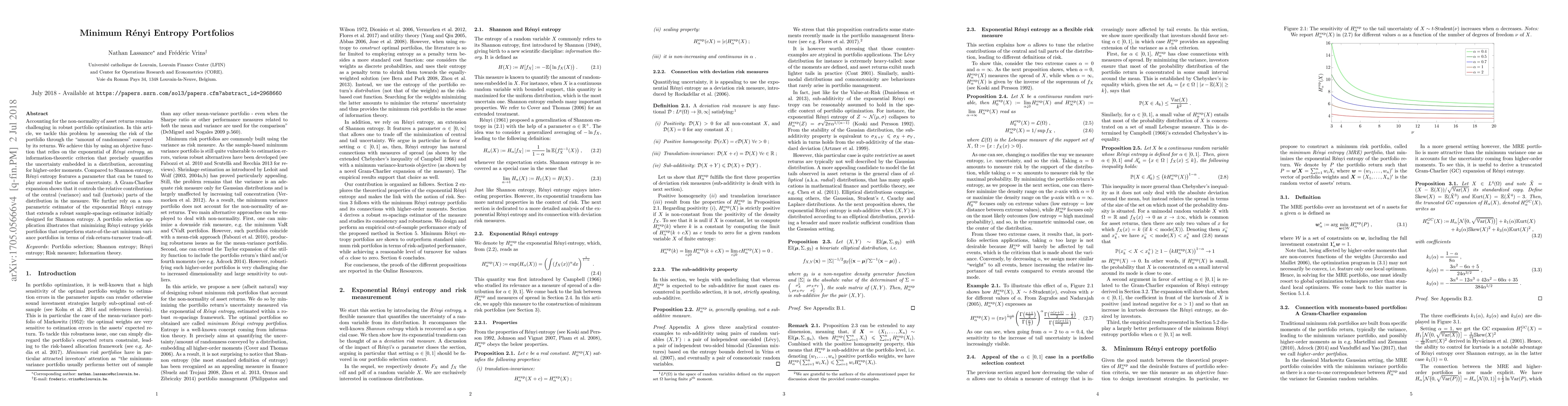 Accounting for the non-normality of asset returns remains challenging in robust portfolio optimization. In this article, we tackle this problem by assessing the risk of the portfolio through the "amount of randomness" conveyed by its returns. We achieve this by using an objective function that relies on the exponential of R\'enyi entropy, an information-theoretic criterion that precisely quantifies the uncertainty embedded in a distribution, accounting for higher-order moments. Compared to Shannon entropy, R\'enyi entropy features a parameter that can be tuned to play around the notion of uncertainty. A Gram-Charlier expansion shows that it controls the relative contributions of the central (variance) and tail (kurtosis) parts of the distribution in the measure. We further rely on a non-parametric estimator of the exponential R\'enyi entropy that extends a robust sample-spacings estimator initially designed for Shannon entropy. A portfolio selection application illustrates that minimizing R\'enyi entropy yields portfolios that outperform state-of-the-art minimum variance portfolios in terms of risk-return-turnover trade-off.