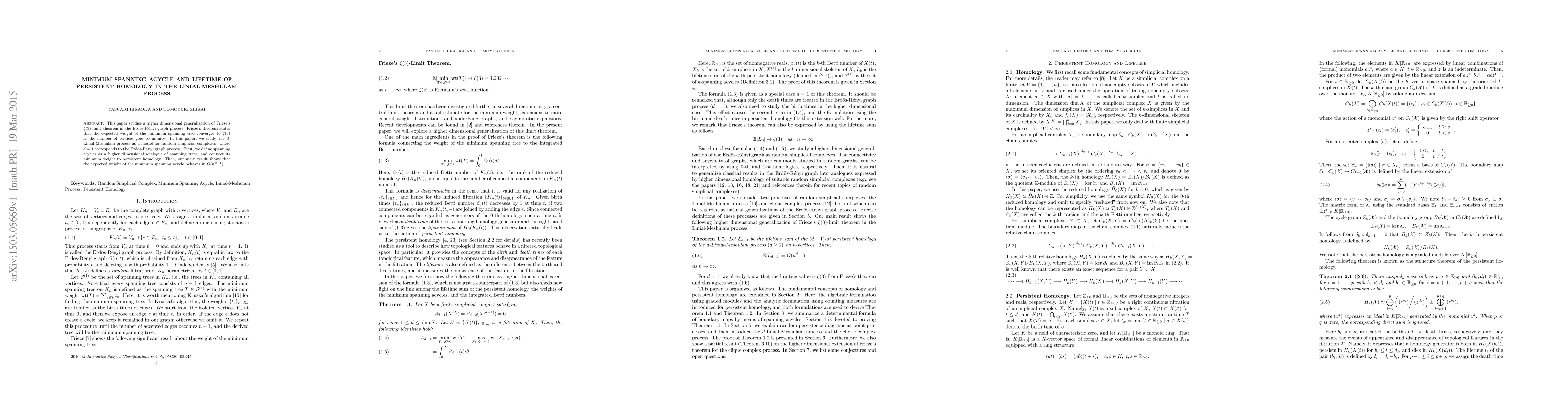 This paper studies a higher dimensional generalization of Frieze's $\zeta(3)$-limit theorem in the Erd\"os-R\'enyi graph process. Frieze's theorem states that the expected weight of the minimum spanning tree converges to $\zeta(3)$ as the number of vertices goes to infinity. In this paper, we study the $d$-Linial-Meshulam process as a model for random simplicial complexes, where $d=1$ corresponds to the Erd\"os-R\'enyi graph process. First, we define spanning acycles as a higher dimensional analogue of spanning trees, and connect its minimum weight to persistent homology. Then, our main result shows that the expected weight of the minimum spanning acycle behaves in $O(n^{d-1})$.