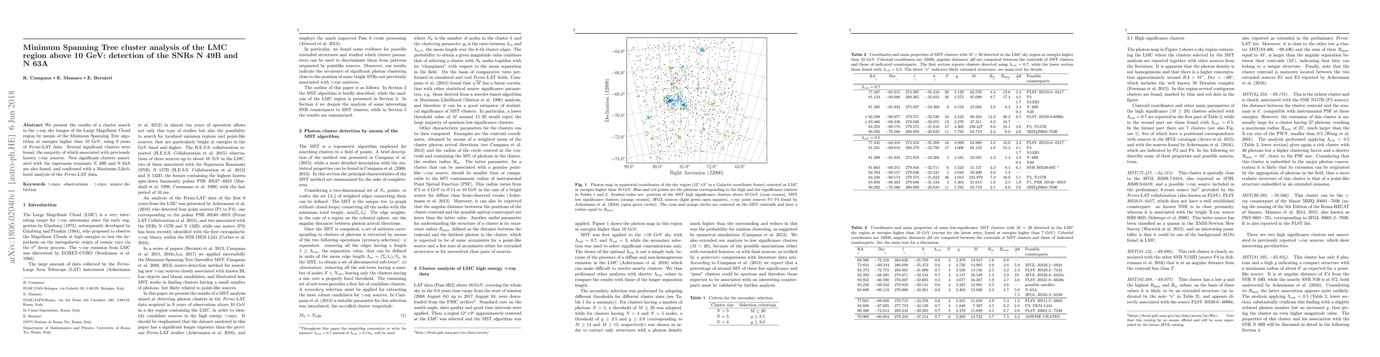 We present the results of a cluster search in the gamma-ray sky images of the Large Magellanic Cloud region by means of the Minimum Spanning Tree algorithm at energies higher than 10 GeV, using 9 years of Fermi-LAT data. Several significant clusters were found, the majority of which associated with previously known gamma-ray sources. New significant clusters associated with the supernova remnants N 49B and N 63A are also found, and confirmed with a Maximum Likelihood analysis of the Fermi-LAT data.