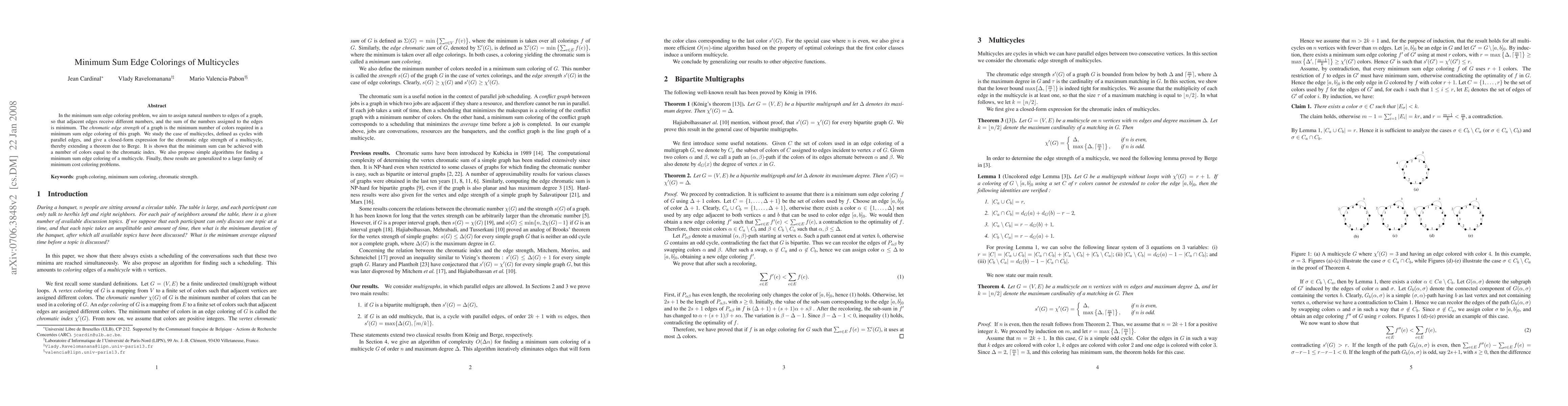 In the minimum sum edge coloring problem, we aim to assign natural numbers to edges of a graph, so that adjacent edges receive different numbers, and the sum of the numbers assigned to the edges is minimum. The {\em chromatic edge strength} of a graph is the minimum number of colors required in a minimum sum edge coloring of this graph. We study the case of multicycles, defined as cycles with parallel edges, and give a closed-form expression for the chromatic edge strength of a multicycle, thereby extending a theorem due to Berge. It is shown that the minimum sum can be achieved with a number of colors equal to the chromatic index. We also propose simple algorithms for finding a minimum sum edge coloring of a multicycle. Finally, these results are generalized to a large family of minimum cost coloring problems.