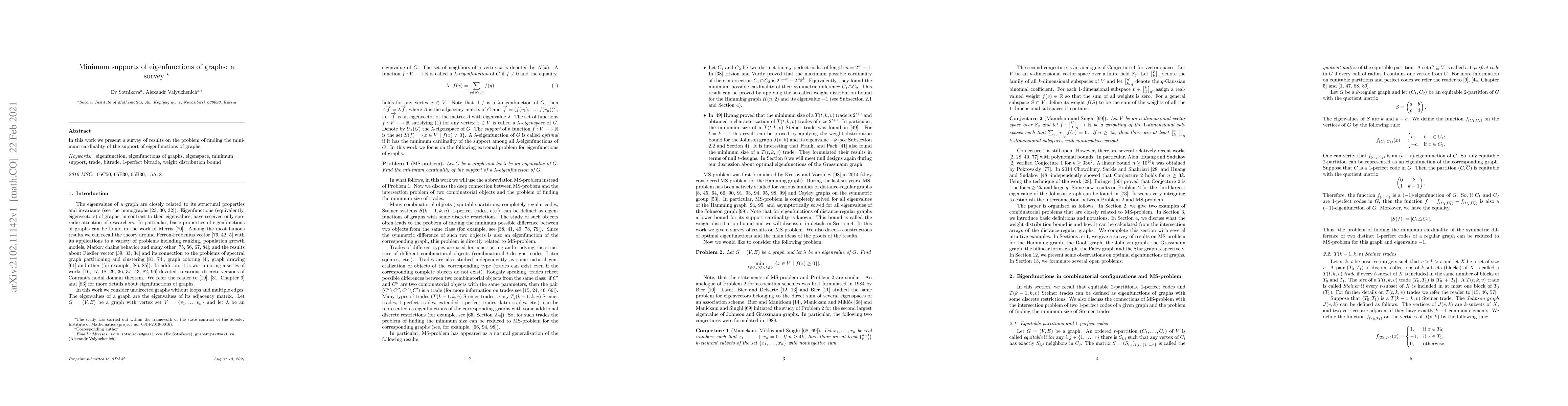 In this work we present a survey of results on the problem of finding the minimum cardinality of the support of eigenfunctions of graphs.