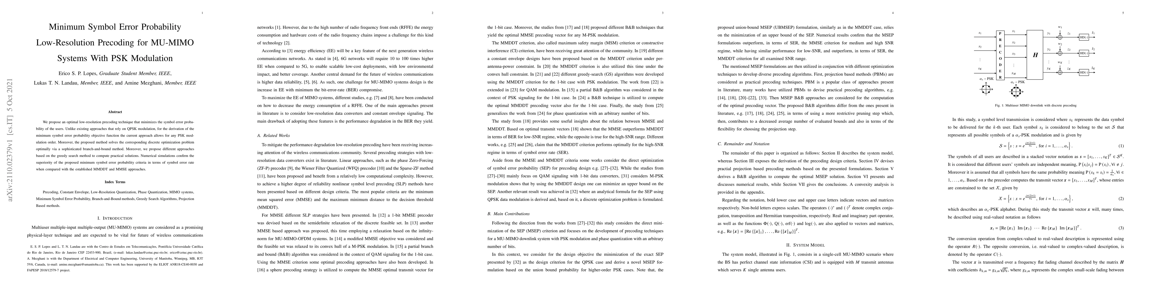 We propose an optimal low-resolution precoding technique that minimizes the symbol error probability of the users. Unlike existing approaches that rely on QPSK modulation, for the derivation of the minimum symbol error probability objective function the current approach allows for any PSK modulation order. Moreover, the proposed method solves the corresponding discrete optimization problem optimally via a sophisticated branch-and-bound method. Moreover, we propose different approaches based on the greedy search method to compute practical solutions. Numerical simulations confirm the superiority of the proposed minimum symbol error probability criteria in terms of symbol error rate when compared with the established MMDDT and MMSE approaches.