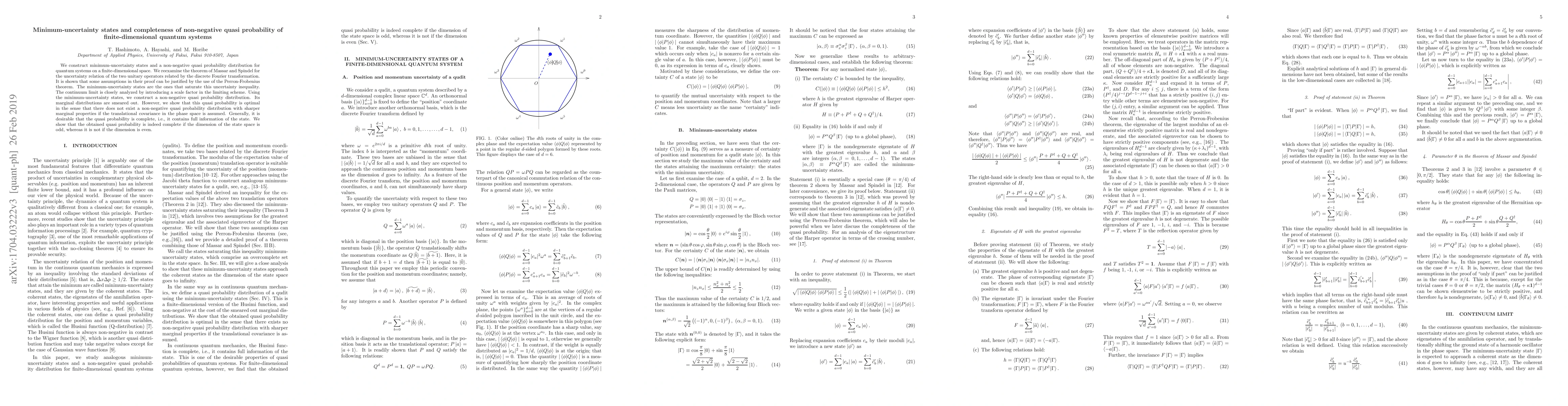This paper constructs minimum-uncertainty states and a non-negative quasi probability distribution for finite-dimensional quantum systems, justifying assumptions in the Massar and Spindel theorem using the Perron-Frobenius theorem. It concludes that the quasi probability is complete and contains full state information when the system's dimension is odd, but not when even.