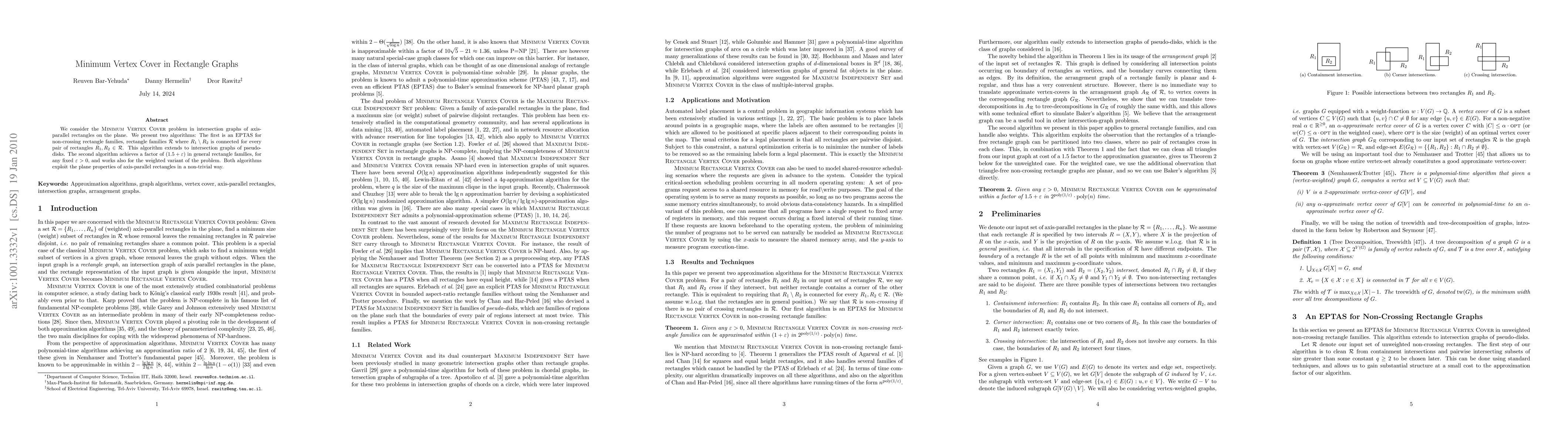 Researchers developed algorithms to solve the Vertex Cover problem in intersection graphs of axis-parallel rectangles on a plane, achieving factors of (1.5 + ψ) for general rectangle families and non-crossing rectangle families.