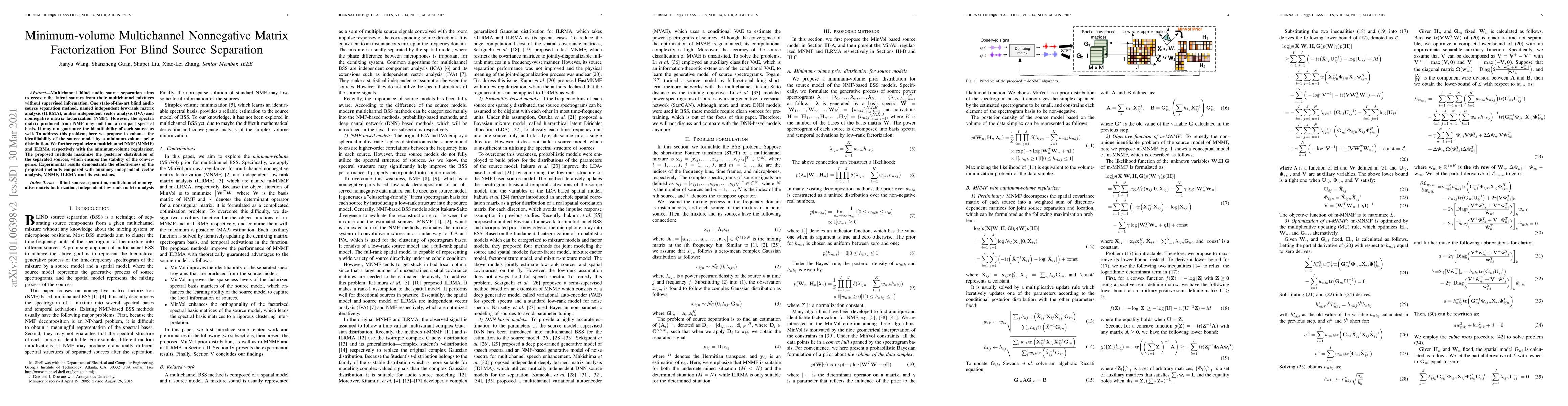 Multichannel blind audio source separation aims to recover the latent sources from their multichannel mixtures without supervised information. One state-of-the-art blind audio source separation method, named independent low-rank matrix analysis (ILRMA), unifies independent vector analysis (IVA) and nonnegative matrix factorization (NMF). However, the spectra matrix produced from NMF may not find a compact spectral basis. It may not guarantee the identifiability of each source as well. To address this problem, here we propose to enhance the identifiability of the source model by a minimum-volume prior distribution. We further regularize a multichannel NMF (MNMF) and ILRMA respectively with the minimum-volume regularizer. The proposed methods maximize the posterior distribution of the separated sources, which ensures the stability of the convergence. Experimental results demonstrate the effectiveness of the proposed methods compared with auxiliary independent vector analysis, MNMF, ILRMA and its extensions.