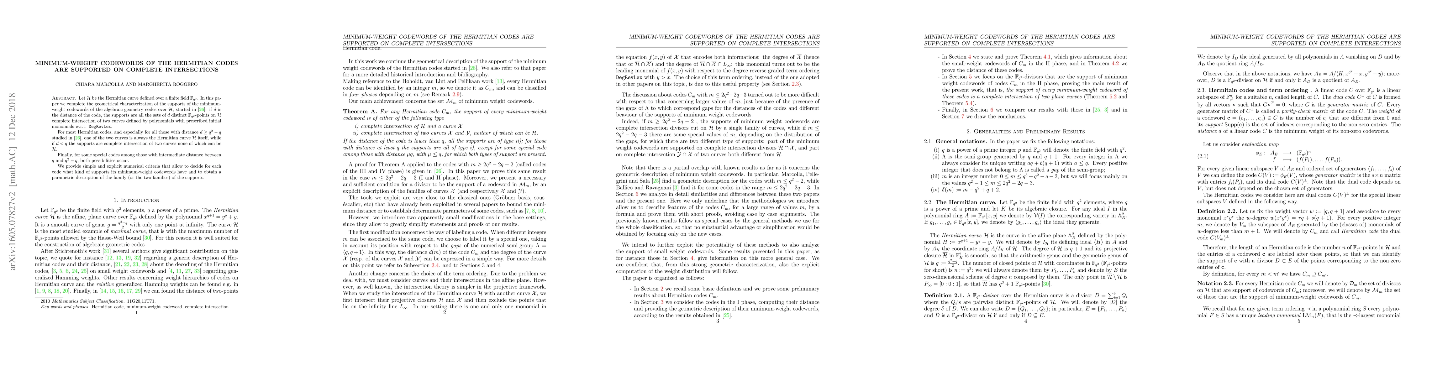 over $\mathcal{H}$, started in [1]: if $d$ is the distance of the code, the