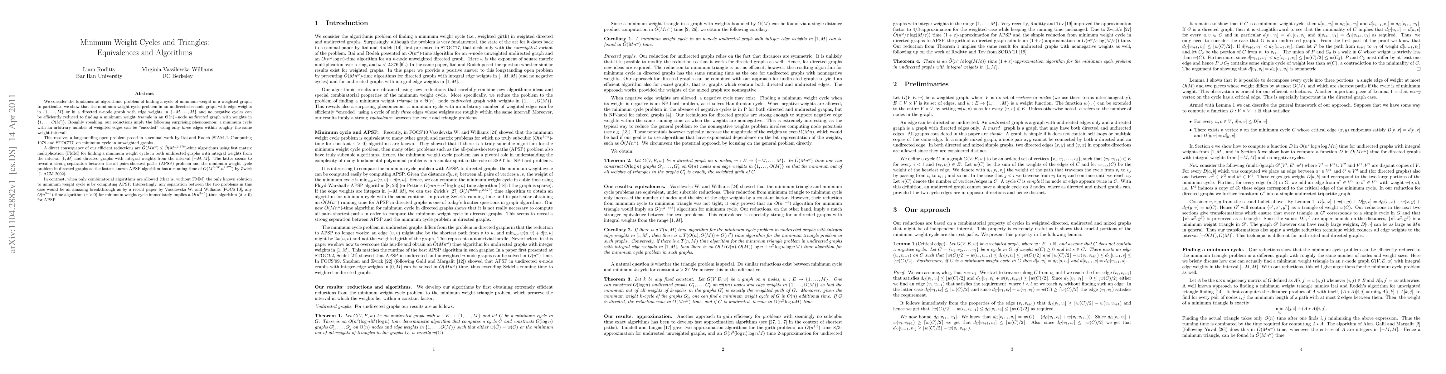 This paper demonstrates an efficient reduction from the minimum weight cycle problem in undirected and directed graphs to finding a minimum weight triangle, resolving a longstanding open problem. It presents O(Mn^ω)-time algorithms using fast matrix multiplication for solving the problem, highlighting a significant separation from the all pairs shortest paths problem in directed graphs.