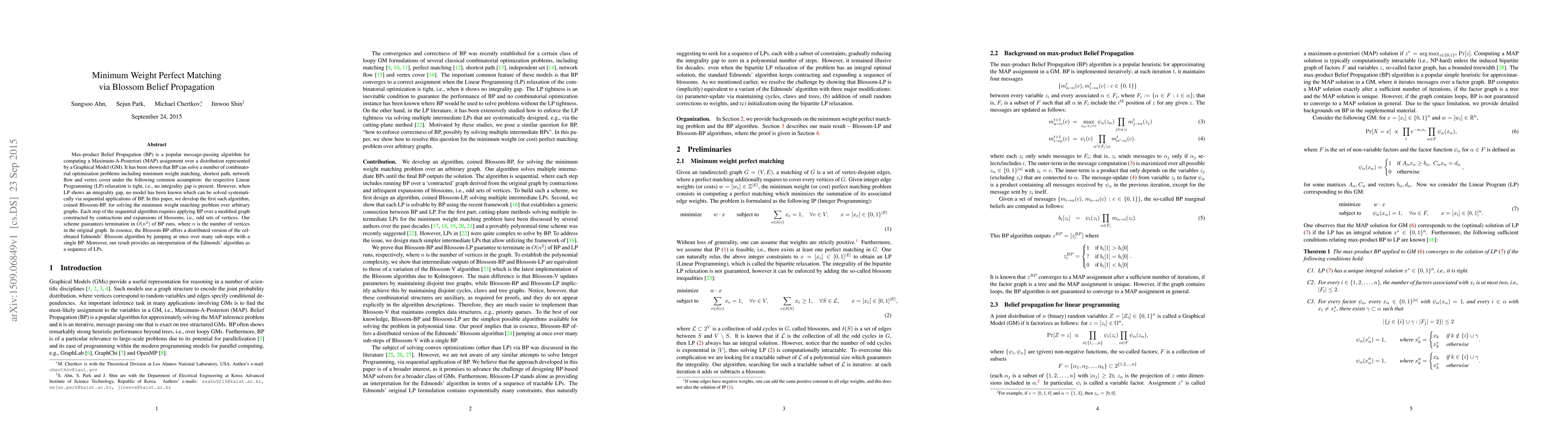 The paper presents Blossom-BP, a novel algorithm that uses BP to solve minimum weight perfect matching problems over arbitrary graphs, even when the LP relaxation has an integrality gap.