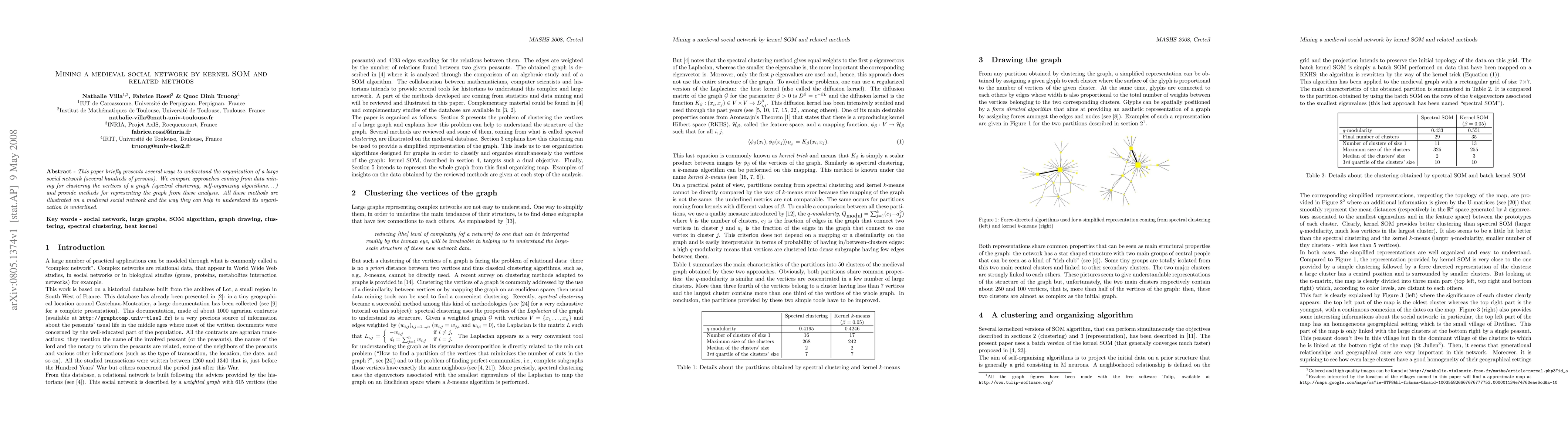 This paper explores various data mining techniques to cluster and analyze a medieval social network, employing methods like spectral clustering and self-organizing maps, and demonstrates their effectiveness in revealing the network's organizational structure.