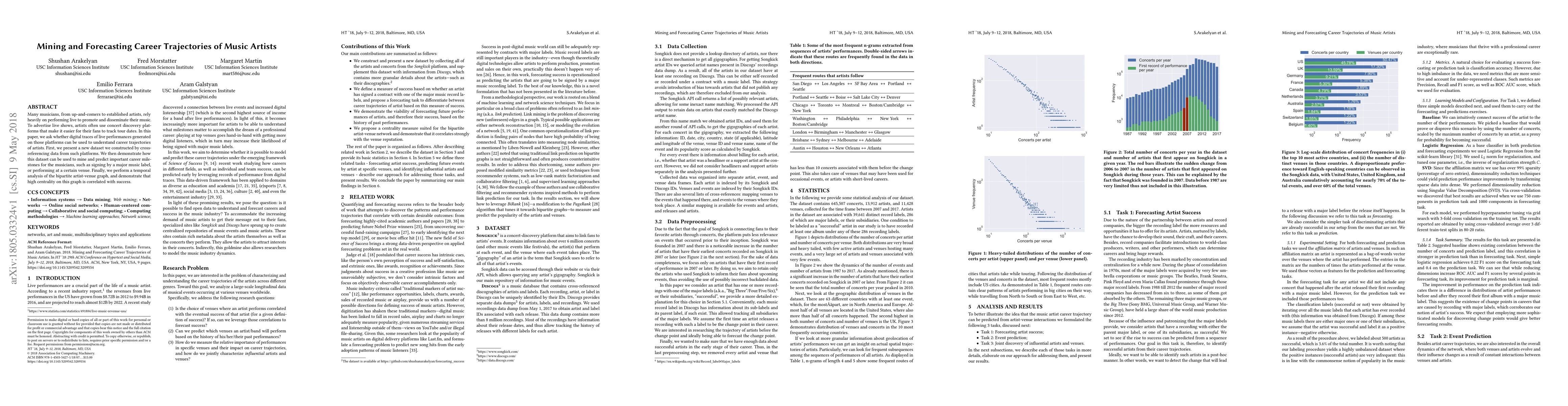 Many musicians, from up-and-comers to established artists, rely heavily on performing live to promote and disseminate their music. To advertise live shows, artists often use concert discovery platforms that make it easier for their fans to track tour dates. In this paper, we ask whether digital traces of live performances generated on those platforms can be used to understand career trajectories of artists. First, we present a new dataset we constructed by cross-referencing data from such platforms. We then demonstrate how this dataset can be used to mine and predict important career milestones for the musicians, such as signing by a major music label, or performing at a certain venue. Finally, we perform a temporal analysis of the bipartite artist-venue graph, and demonstrate that high centrality on this graph is correlated with success.