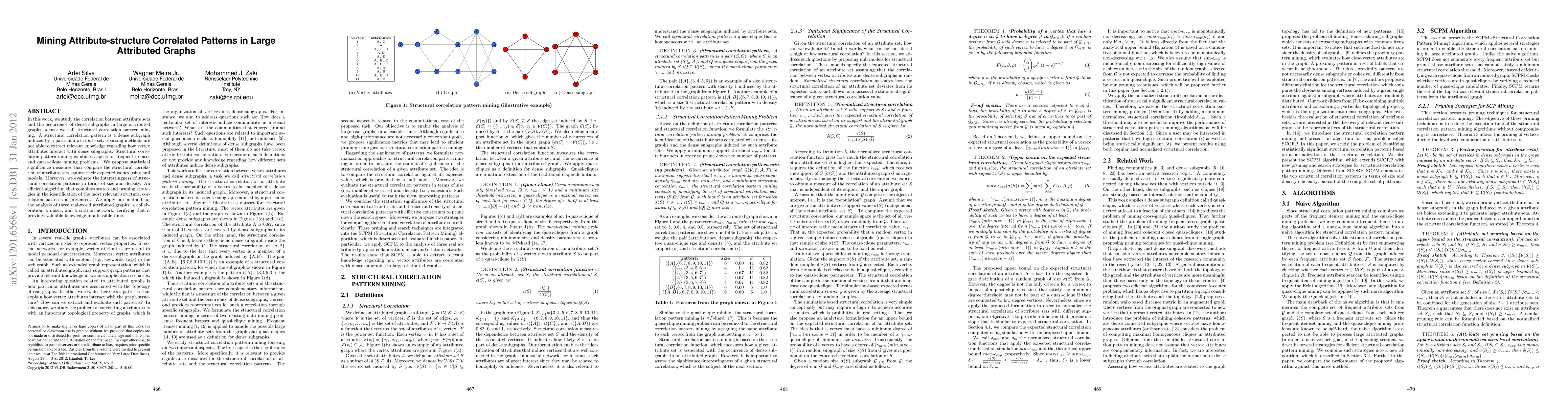 This paper proposes a method for mining structural correlation patterns in large attributed graphs, identifying dense subgraphs induced by specific attribute sets. It introduces statistical significance measures and an efficient algorithm to extract relevant knowledge about how vertex attributes interact with dense subgraphs, demonstrating its effectiveness on real-world collaboration, music, and citation networks.