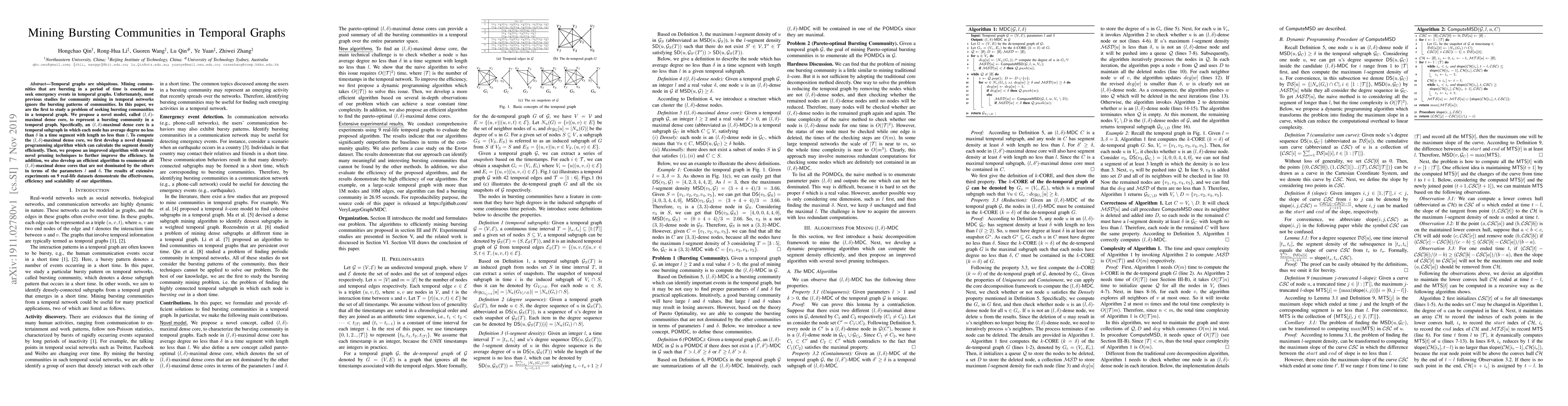 Temporal graphs are ubiquitous. Mining communities that are bursting in a period of time is essential to seek emergency events in temporal graphs. Unfortunately, most previous studies for community mining in temporal networks ignore the bursting patterns of communities. In this paper, we are the first to study a problem of seeking bursting communities in a temporal graph. We propose a novel model, called (l, {\delta})-maximal dense core, to represent a bursting community in a temporal graph. Specifically, an (l, {\delta})-maximal dense core is a temporal subgraph in which each node has average degree no less than {\delta} in a time segment with length no less than l. To compute the (l, {\delta})-maximal dense core, we first develop a novel dynamic programming algorithm which can calculate the segment density efficiently. Then, we propose an improved algorithm with several novel pruning techniques to further improve the efficiency. In addition, we also develop an efficient algorithm to enumerate all (l, {\delta})-maximal dense cores that are not dominated by the others in terms of the parameters l and {\delta}. The results of extensive experiments on 9 real-life datasets demonstrate the effectiveness, efficiency and scalability of our algorithms.