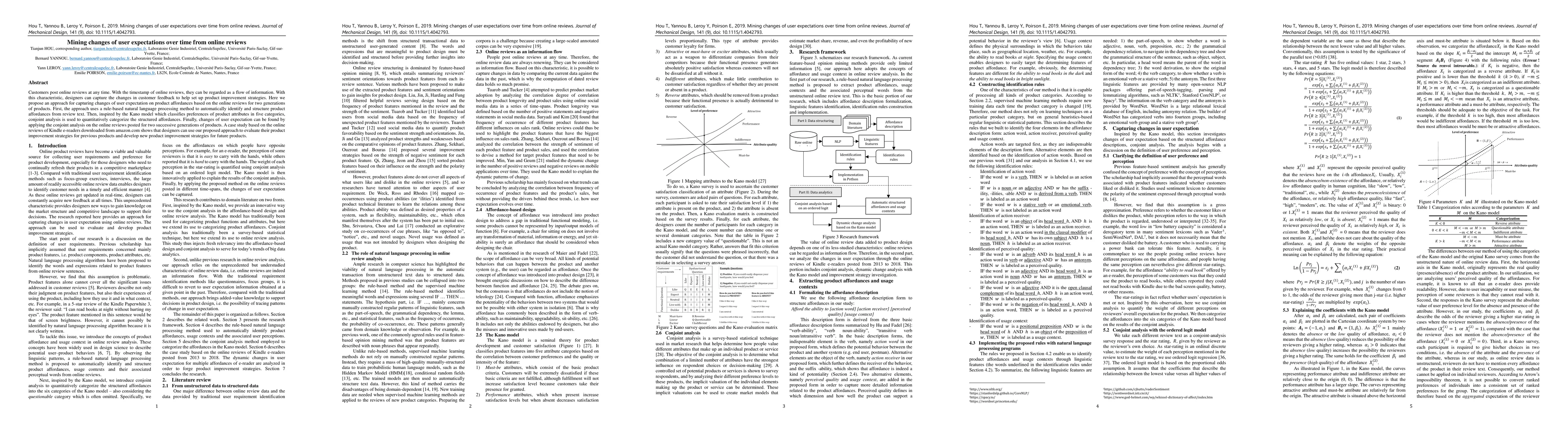 This paper proposes a method to track changes in user expectations over time using online reviews, employing natural language processing to identify product affordances and conjoint analysis to categorize them. The approach is demonstrated through a case study on Kindle e-reader reviews, showing its utility in evaluating past product improvements and guiding future strategies.