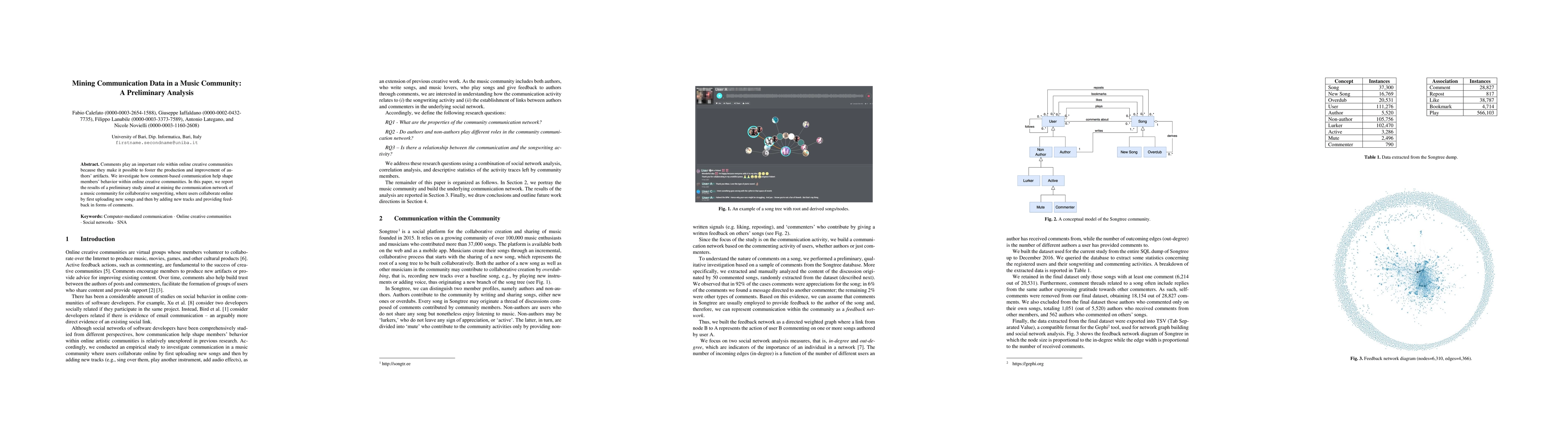 Comments play an important role within online creative communities because they make it possible to foster the production and improvement of authors' artifacts. We investigate how comment-based communication help shape members' behavior within online creative communities. In this paper, we report the results of a preliminary study aimed at mining the communication network of a music community for collaborative songwriting, where users collaborate online by first uploading new songs and then by adding new tracks and providing feedback in forms of comments.