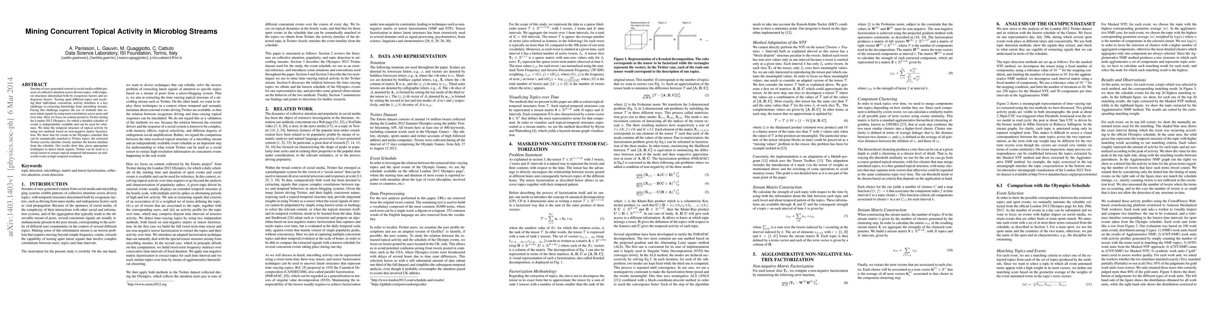 This paper explores methods to extract concurrent topical activity from Twitter streams, focusing on the London 2012 Olympics. It employs non-negative matrix factorization to reveal temporal patterns in user-generated content, demonstrating that Twitter can serve as a reliable social sensor for real-time event tracking.