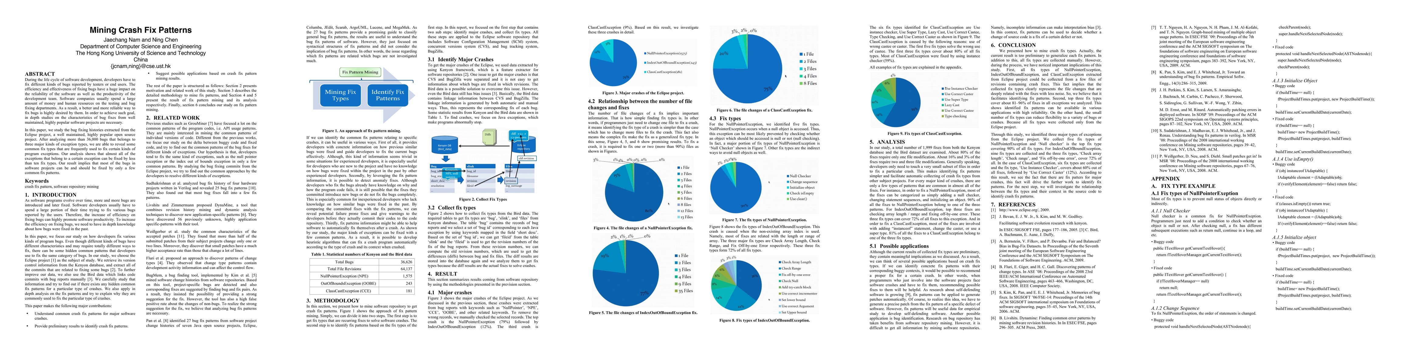 This paper analyzes bug fixing histories from the Eclipse project to identify common fix patterns for different types of exceptions. The study reveals that most exceptions can be fixed using fewer than ten common fix types, suggesting that software bugs can often be addressed with a limited set of effective patterns.