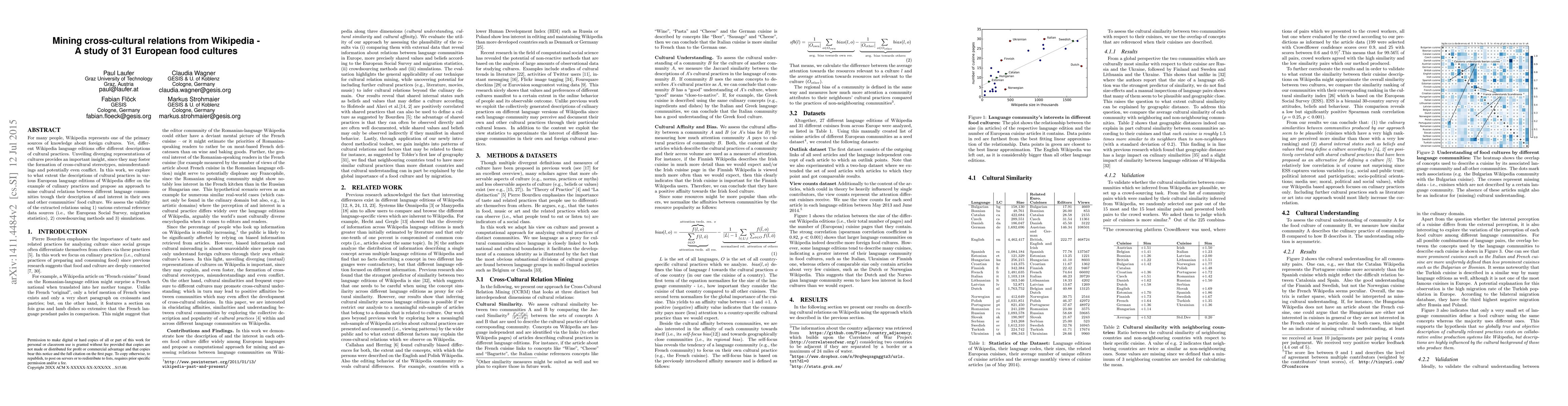 For many people, Wikipedia represents one of the primary sources of knowledge about foreign cultures. Yet, different Wikipedia language editions offer different descriptions of cultural practices. Unveiling diverging representations of cultures provides an important insight, since they may foster the formation of cross-cultural stereotypes, misunderstandings and potentially even conflict. In this work, we explore to what extent the descriptions of cultural practices in various European language editions of Wikipedia differ on the example of culinary practices and propose an approach to mine cultural relations between different language communities trough their description of and interest in their own and other communities' food culture. We assess the validity of the extracted relations using 1) various external reference data sources (i.e., the European Social Survey, migration statistics), 2) crowdsourcing methods and 3) simulations.
