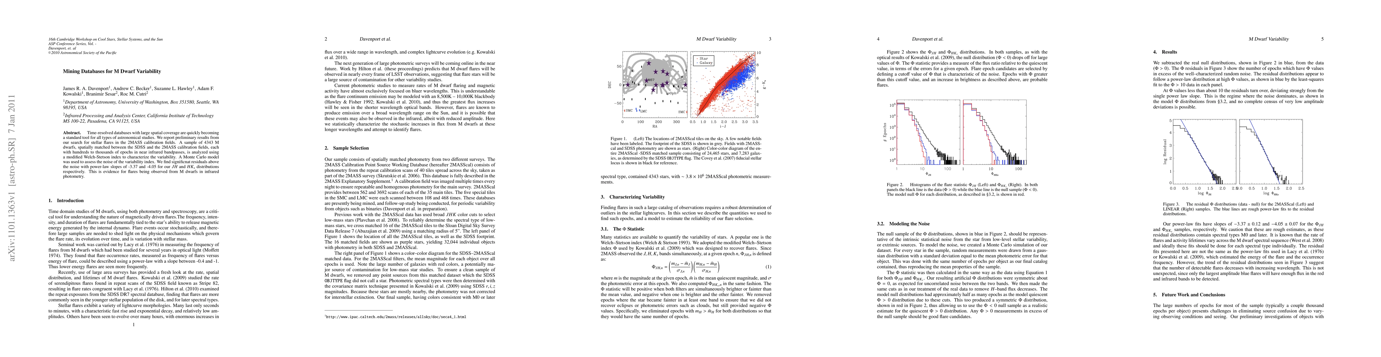 Time-resolved databases with large spatial coverage are quickly becoming a standard tool for all types of astronomical studies. We report preliminary results from our search for stellar flares in the 2MASS calibration fields. A sample of 4343 M dwarfs, spatially matched between the SDSS and the 2MASS calibration fields, each with hundreds to thousands of epochs in near infrared bandpasses, is analyzed using a modified Welch-Stetson index to characterize the variability. A Monte Carlo model was used to assess the noise of the variability index. We find significnat residuals above the noise with power-law slopes of -3.37 and -4.05 for our JH and HKs distributions respectively. This is evidence for flares being observed from M dwarfs in infrared photometry.