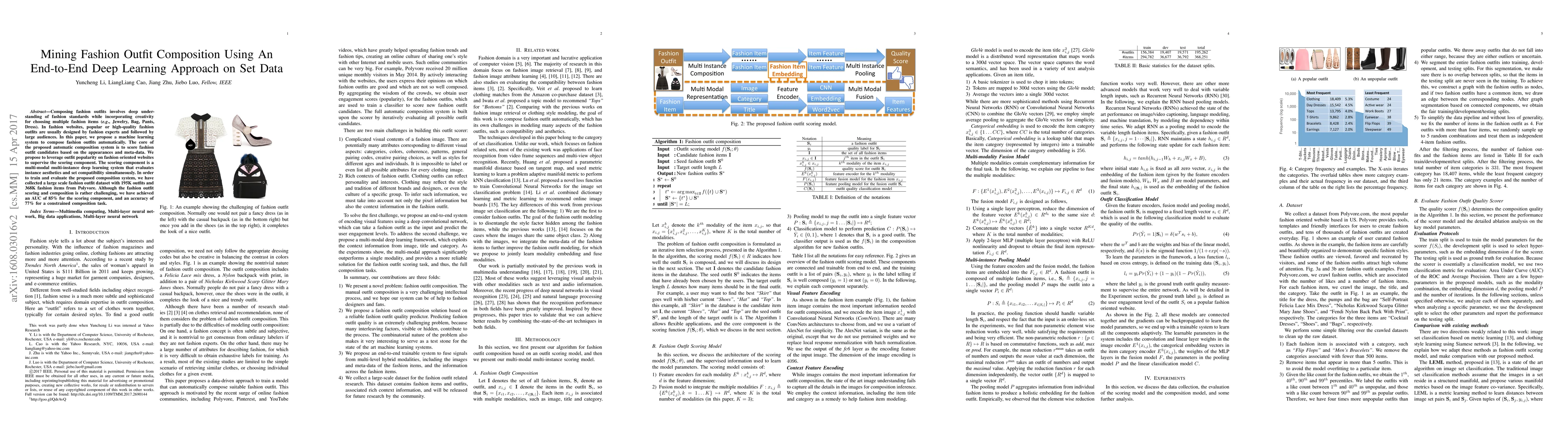 The paper introduces a multi-modal, multi-instance deep learning system for scoring fashion outfit candidates based on appearance and metadata, utilizing an end-to-end trainable framework.