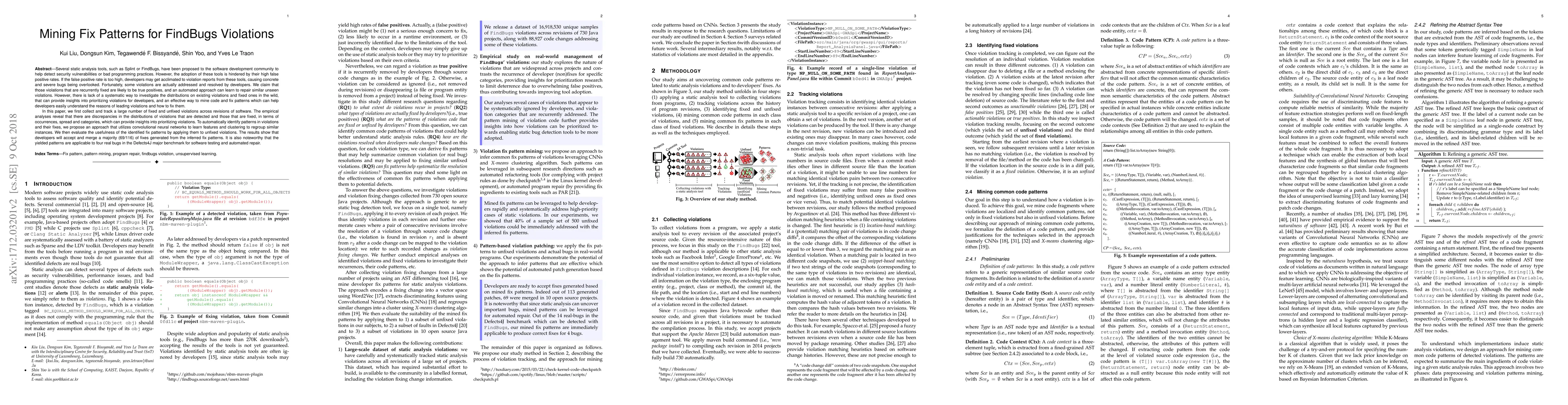 The paper proposes a method for mining fix patterns using convolutional neural networks and clustering, which can be applied to unfixed violations to generate patches.