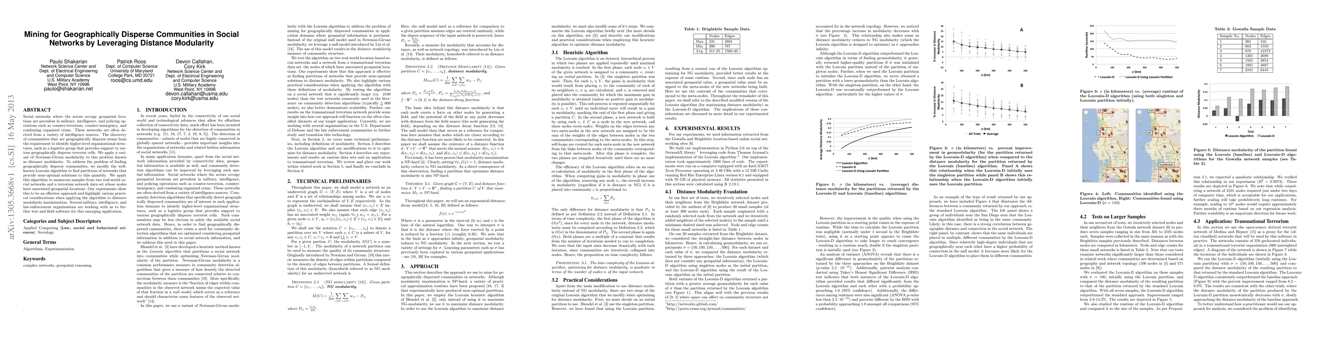 This paper proposes a modified Louvain algorithm leveraging distance modularity to identify geographically disperse communities in social networks, crucial for military and intelligence operations. Experiments on real-world datasets demonstrate the effectiveness of the approach, with ongoing collaboration for practical application.