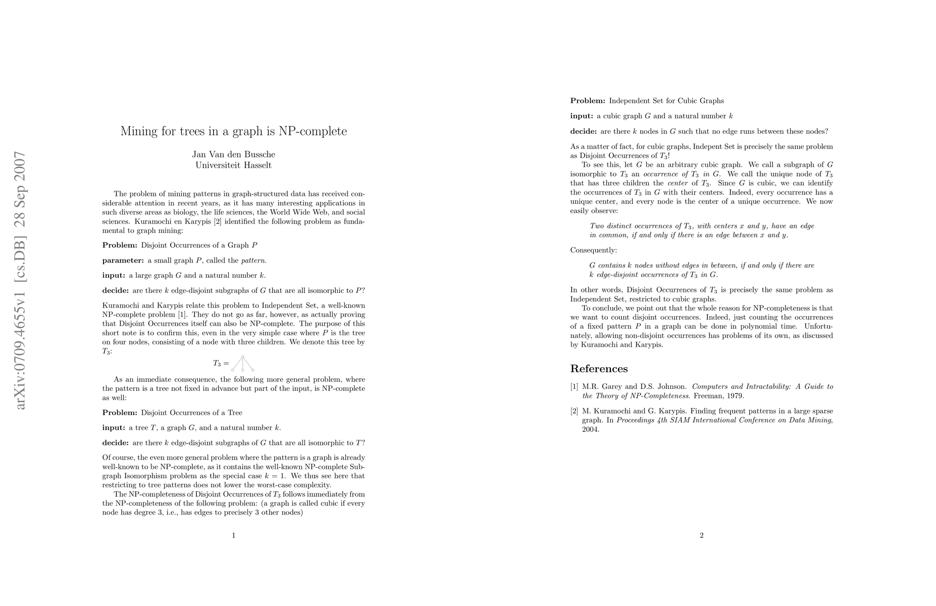 Summary: This paper demonstrates that the problem of identifying trees within a graph is NP-complete, highlighting its computational complexity. The findings underscore the difficulty of solving this problem efficiently.