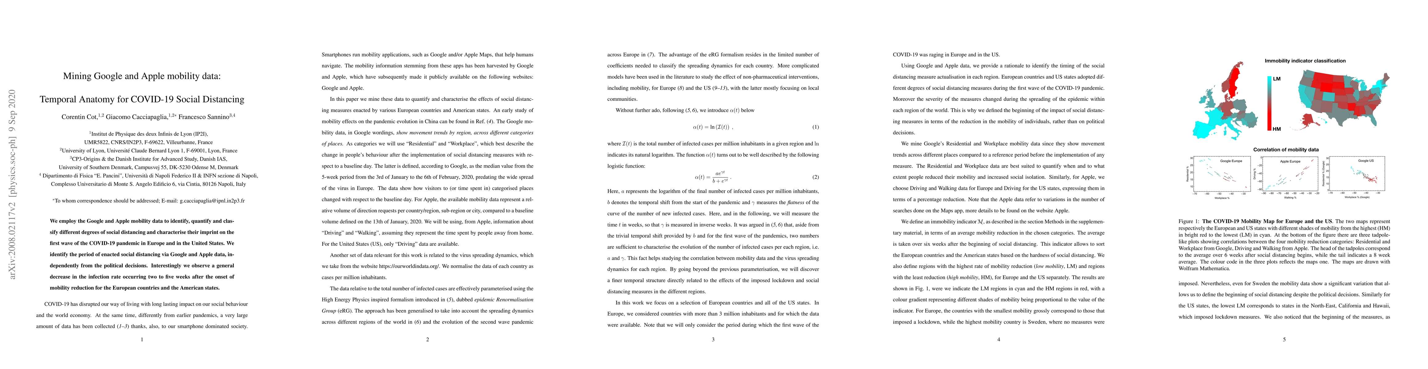 We employ the Google and Apple mobility data to identify, quantify and classify different degrees of social distancing and characterise their imprint on the first wave of the COVID-19 pandemic in Europe and in the United States. We identify the period of enacted social distancing via Google and Apple data, independently from the political decisions. Interestingly we observe a general decrease in the infection rate occurring two to five weeks after the onset of mobility reduction for the European countries and the American states.