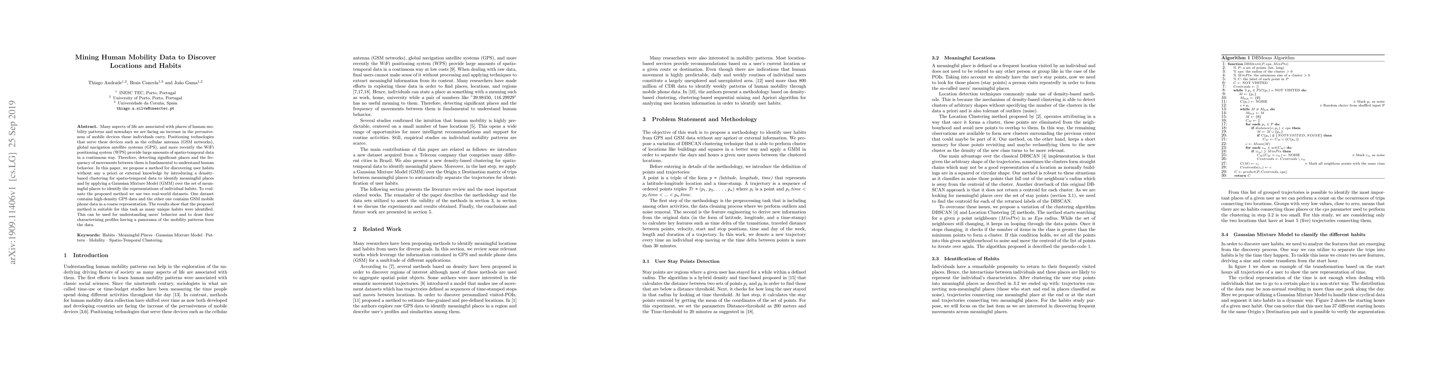 This paper proposes a density-based clustering method and a Gaussian Mixture Model to identify significant locations and user habits from human mobility data without prior knowledge. Evaluations on real-world GPS and GSM datasets demonstrate the method's effectiveness in uncovering unique behavioral patterns.