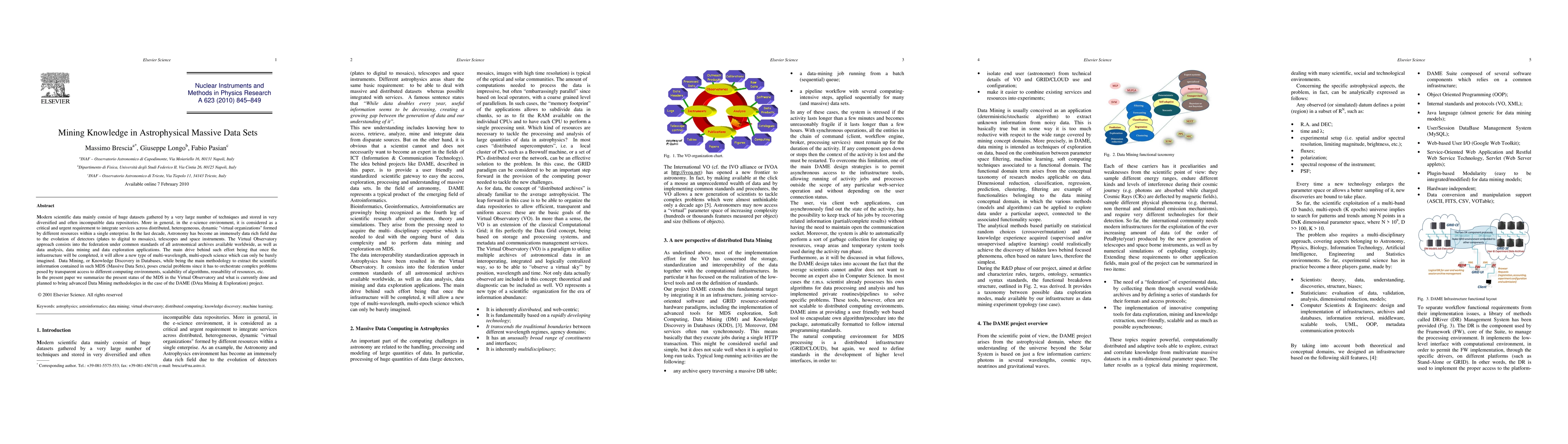 This paper discusses the integration of diverse astrophysical datasets within the Virtual Observatory framework to enable advanced data mining and knowledge discovery. It highlights the challenges and current efforts in the DAME project to develop scalable and reusable data mining methodologies for handling massive data sets in astronomy.