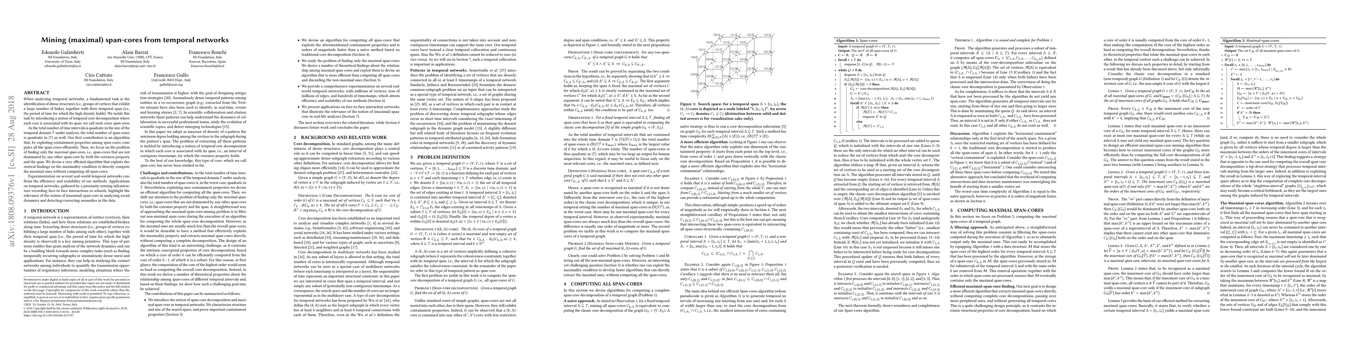 This paper introduces an efficient algorithm for identifying maximal span-cores in temporal networks, dense structures with high link density over specific time spans. The authors propose a novel temporal core decomposition method and demonstrate its scalability and effectiveness through experiments on real-world datasets, highlighting its utility in analyzing social dynamics and detecting anomalies.