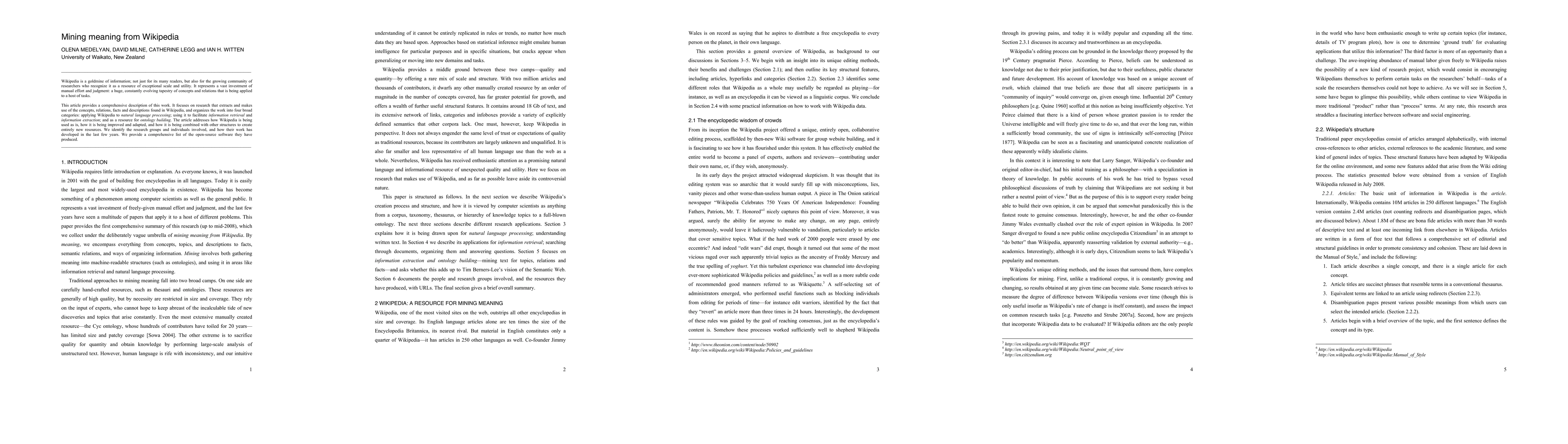 This research paper explores how Wikipedia is being mined for its vast amount of information to improve natural language processing, information retrieval, and ontology building. It highlights key findings, methodologies, and implications of using Wikipedia as a resource in various applications.