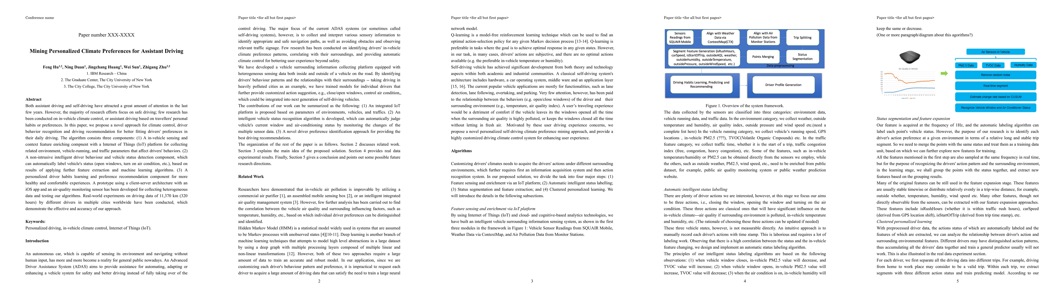 This research introduces a novel climate control system for assistant driving, incorporating a three-component algorithm. It utilizes IoT for data collection, machine learning for driver behavior detection, and personalized preference learning. Real-world experiments with 11,370 km of driving data demonstrate the system's effectiveness and accuracy.
