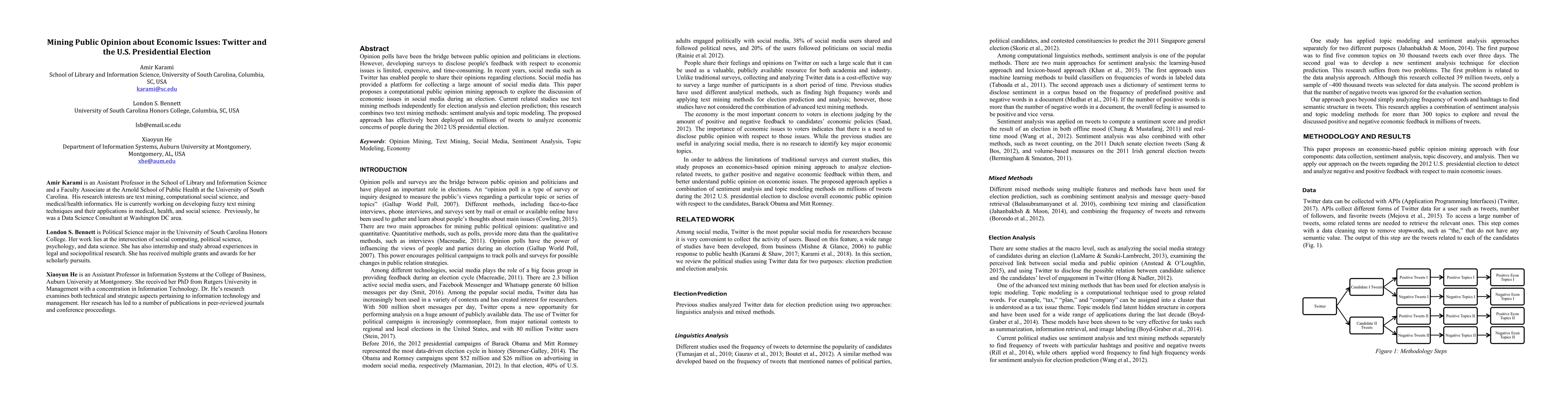 This paper proposes a computational method for mining public opinion on economic issues from Twitter data during elections, combining sentiment analysis and topic modeling. The approach was applied to millions of tweets to analyze economic concerns during the 2012 U.S. presidential election, offering a cost-effective alternative to traditional opinion polls.