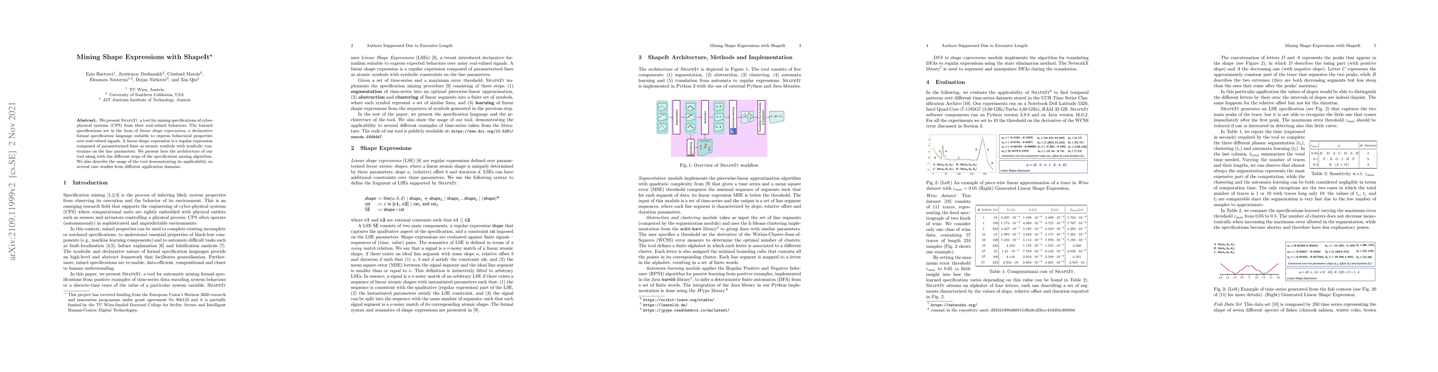 We present ShapeIt, a tool for mining specifications of cyber-physical systems (CPS) from their real-valued behaviors. The learned specifications are in the form of linear shape expressions, a declarative formal specification language suitable to express behavioral properties over real-valued signals. A linear shape expression is a regular expression composed of parameterized lines as atomic symbols with symbolic constraints on the line parameters. We present here the architecture of our tool along with the different steps of the specification mining algorithm. We also describe the usage of the tool demonstrating its applicability on several case studies from different application domains.