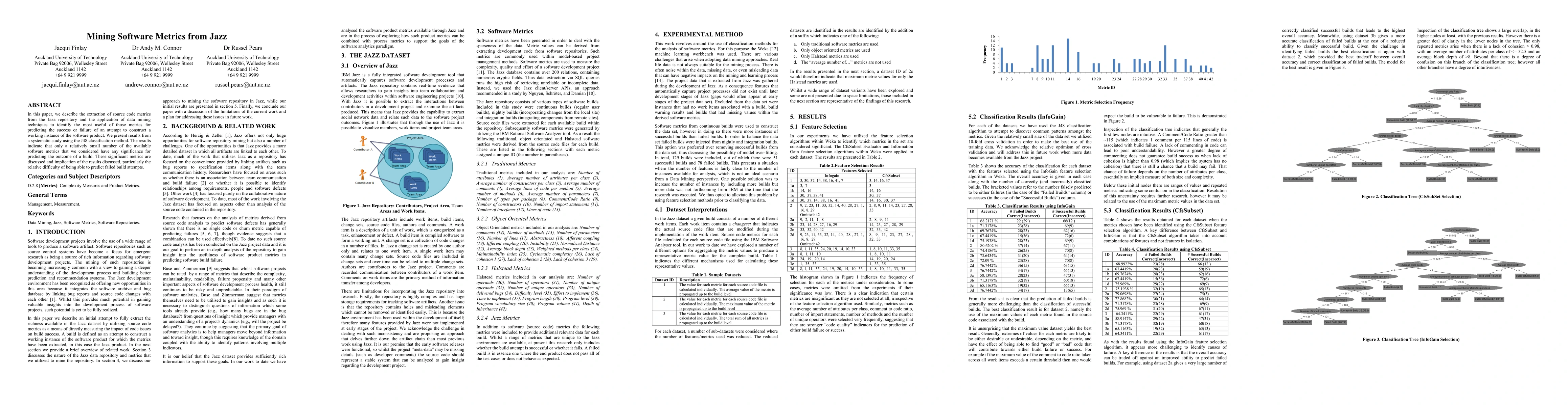 In this paper, we describe the extraction of source code metrics from the Jazz repository and the application of data mining techniques to identify the most useful of those metrics for predicting the success or failure of an attempt to construct a working instance of the software product. We present results from a systematic study using the J48 classification method. The results indicate that only a relatively small number of the available software metrics that we considered have any significance for predicting the outcome of a build. These significant metrics are discussed and implication of the results discussed, particularly the relative difficulty of being able to predict failed build attempts.