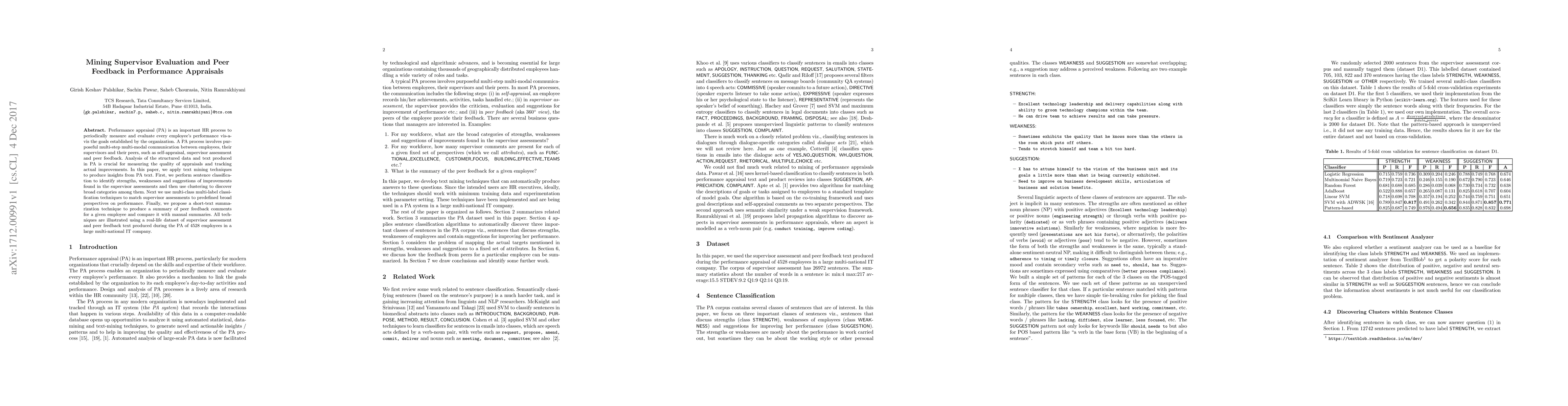 This research introduces a new method for analyzing performance appraisal data, combining sentence classification and clustering to identify broad categories among supervisor assessments.