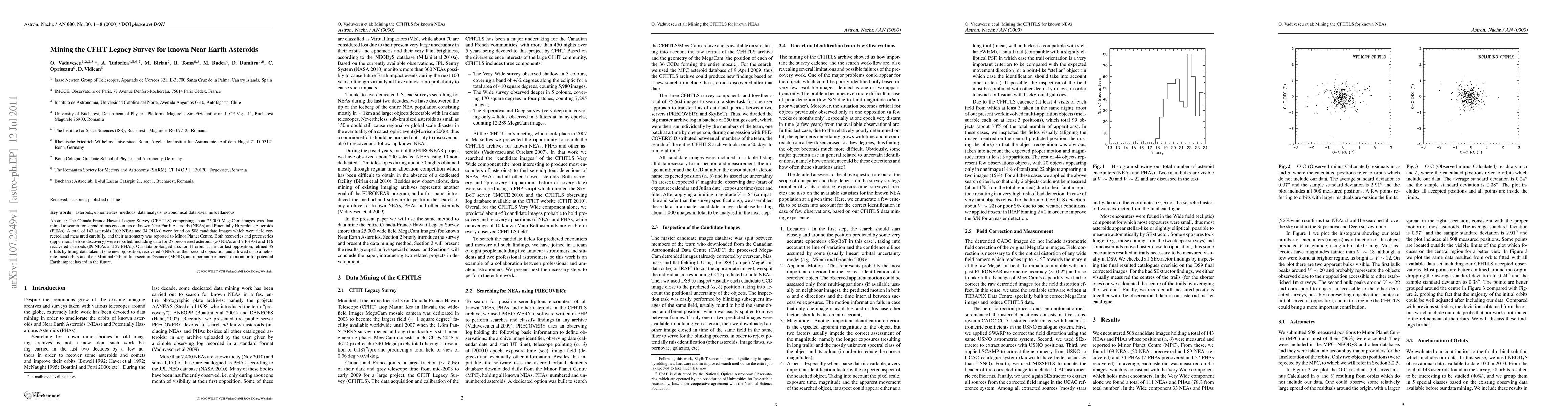 The CFHTLS data mining project identified 143 known Near Earth Asteroids and Potentially Hazardous Asteroids in 508 images, reporting both recoveries and precoveries to the Minor Planet Centre. This effort refined orbits and improved Minimal Orbital Intersection Distances, enhancing future Earth impact hazard monitoring.