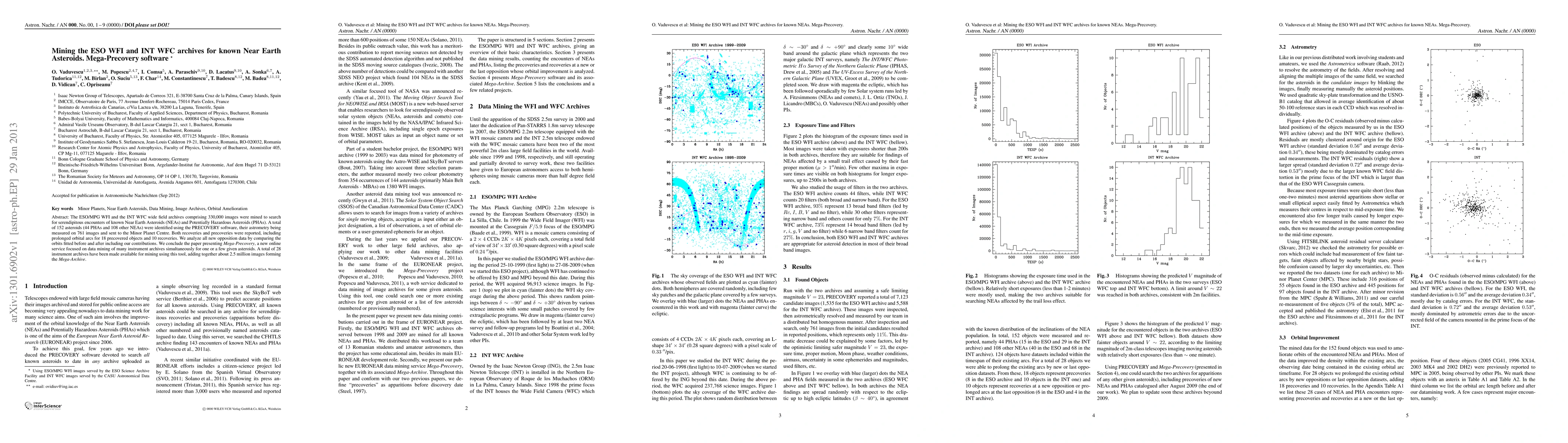This paper details the use of the Mega-Precovery software to mine the ESO WFI and INT WFC archives, identifying 152 known Near Earth Asteroids, including 44 Potentially Hazardous Asteroids, through 761 images. The new online service, Mega-Precovery, facilitates data mining across 28 instrument archives totaling 2.5 million images.