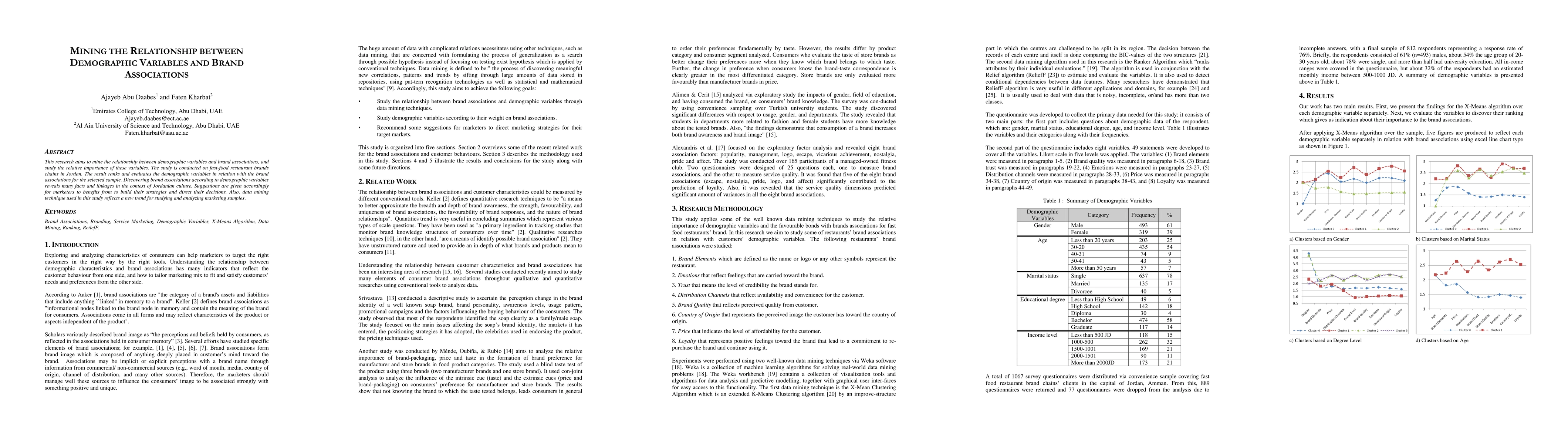 This study explores the relationship between demographic variables and brand associations for fast-food chains in Jordan, using data mining techniques. It ranks demographic factors' relative importance in shaping brand associations, offering insights for marketers to tailor their strategies.