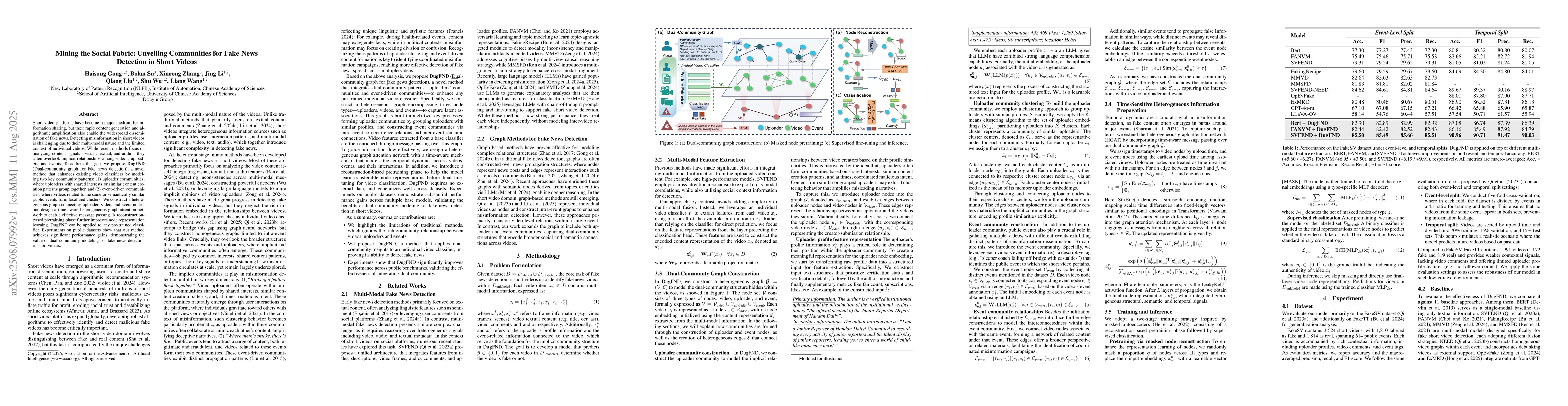 DugFND introduces a novel dual-community graph framework with time-aware heterogeneous graph attention networks for effective fake news detection in short videos.