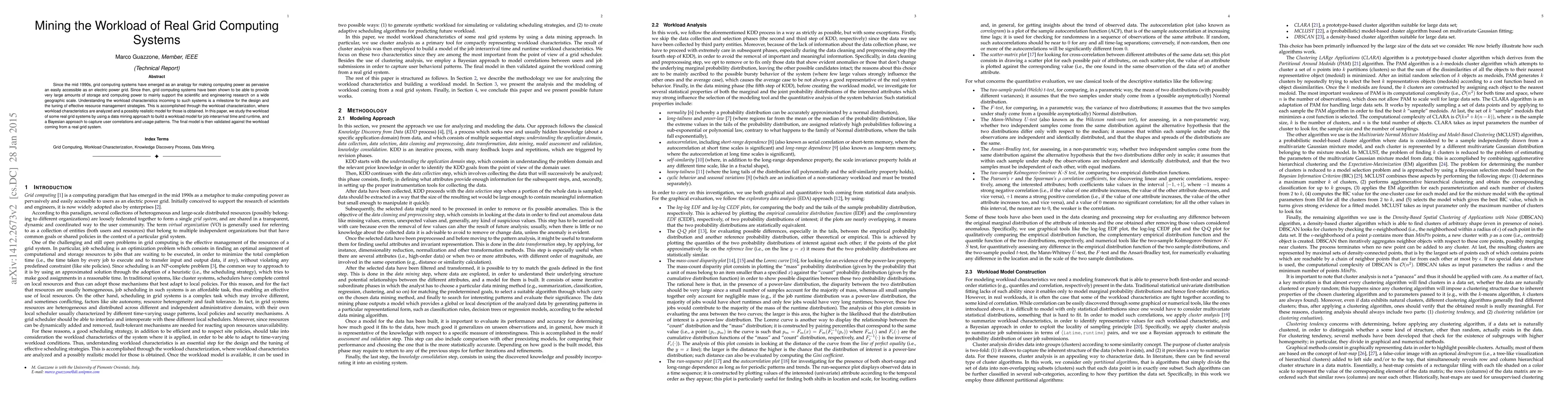 Since the mid 1990s, grid computing systems have emerged as an analogy for making computing power as pervasive an easily accessible as an electric power grid. Since then, grid computing systems have been shown to be able to provide very large amounts of storage and computing power to mainly support the scientific and engineering research on a wide geographic scale. Understanding the workload characteristics incoming to such systems is a milestone for the design and the tuning of effective resource management strategies. This is accomplished through the workload characterization, where workload characteristics are analyzed and a possibly realistic model for those is obtained. In this paper, we study the workload of some real grid systems by using a data mining approach to build a workload model for job interarrival time and runtime, and a Bayesian approach to capture user correlations and usage patterns. The final model is then validated against the workload coming from a real grid system.