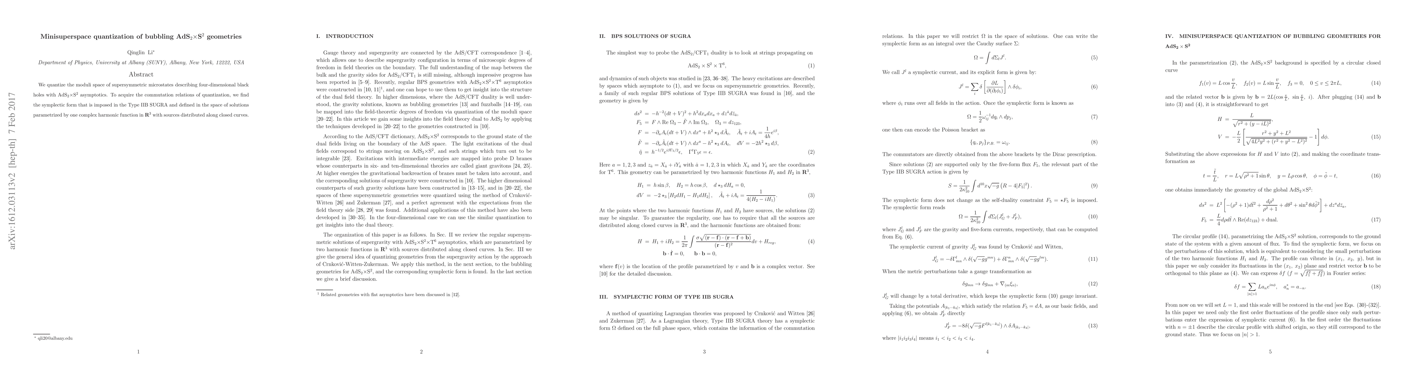 We quantize the moduli space of supersymmetric microstates describing four-dimensional black holes with AdS$_2$$\times$S$^2$ asymptotics. To acquire the commutation relations of quantization, we find the symplectic form that is imposed in the Type IIB SUGRA and defined in the space of solutions parameterized by one complex harmonic function in ${R}^3$ with sources distributed along closed curves.