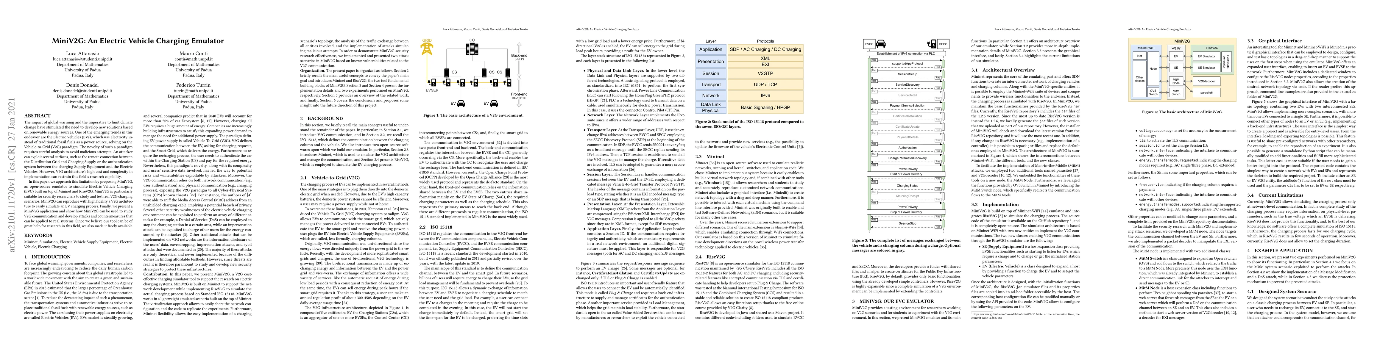 The paper introduces MiniV2G, an open-source emulator for simulating Electric Vehicle Charging and Vehicle-to-Grid (V2G) scenarios, aiming to facilitate research on V2G security. MiniV2G addresses the high cost and complexity of real V2G systems, enabling researchers to study and test V2G communication and develop countermeasures.