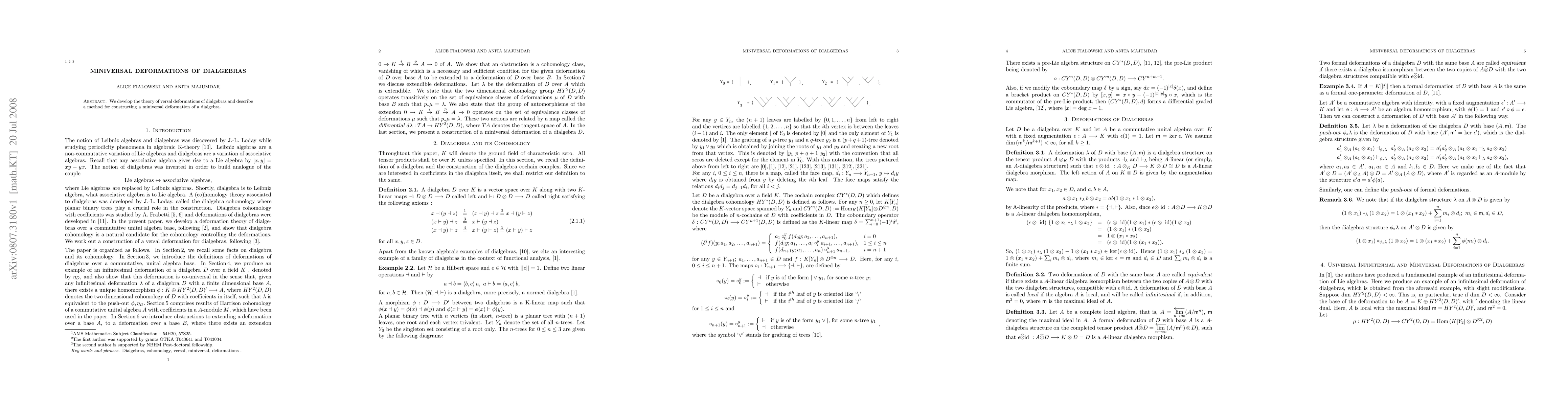 Summary: This paper introduces the concept of versal deformations for dialgebras and presents a systematic approach to constructing miniversal deformations, thereby advancing the theoretical framework for understanding dialgebra structures.